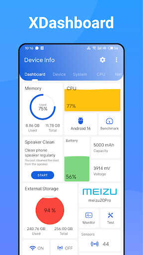 CPU X显示有关设备(如处理器,内核,速度,型号,RAM,相机,传感器等)的最完整信息。请参阅其他Android智能手机的最详细规格。<br>您可以与世界各地的技术爱好者进行讨论,以交流想法和分享知识。您可以提出问题并给出答案。<br><br><br> 特征<br><br>•设备规格-获取有关设备(如处理器,<br>核心,速度,型号,RAM,相机,传感器等<br><br>•搜索智能手机-查看最详细的Android智能手机规格。<br><br>•Internet Speed Monitor-在通知中查看当前的下载和上传速度,在状态栏中查看合并的速度。<br><br>•电池监视器-在通知中查看以毫安为单位的充电或放电电流和电池温度。<br><br>•新闻和文章-最新技术更新和内容翔实的文章。<br><br>•问题/答案论坛-一个专门的论坛来回答您的查询。<br><br>•测试-测试设备的功能,例如显示屏,多点触控,耳塞,扬声器,麦克风,振动,Wi-Fi,蓝牙,指纹,音量按钮,手电筒,耳机插孔和充电端口。<br><br>•工具<br> 标尺-精确的线性刻度尺,用于厘米和英寸的距离测量。<br> 指南针-一种有用的工具,可通过设备中的磁传感器显示地球的北磁。<br> 气泡水准仪-一种用于指示表面是否在水平面中水平的工具。<br> 紧急信号-带有文本的彩色屏幕灯在紧急情况下发出信号。<br><br>•小部件-主屏幕上的半透明小部件显示设备重要状态的一目了然信息。