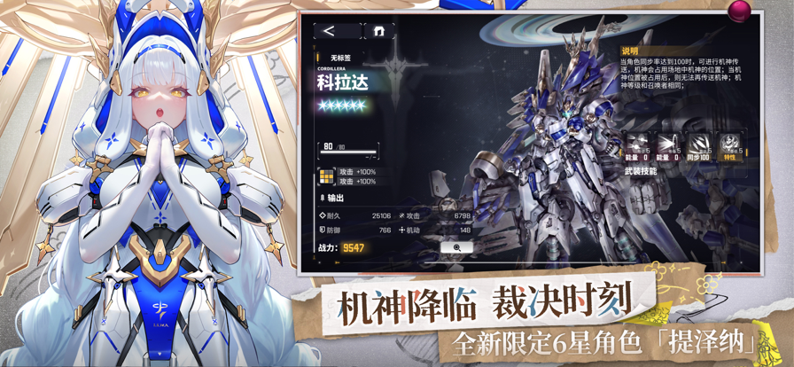 【世界观】 近未来,各地势力,为争夺利益,纷争四起。 诺亚科技公司优先开发出了强大的可延展性战术外骨骼——【艾塔】,并在赤道上空建造了搭载着超级兵器的巨大环形轨道基地——【天穹】,以垄断资源。 天空被巨大的钢铁遮蔽,黑暗笼罩,绝望蔓延。 于是,人类各大势力联合起来,向诺亚科技公司发起了反攻,这场战争将地表的生态几乎毁灭殆尽。此后,各势力联合研发出了新型战斗机甲【艾塔】,成立了“人类同盟”,与诺亚科技进入对峙状态。 世界某处,“人类同盟”直属的战斗组织——第九协约,正在等待一位来客…… 【执行官】你的到来,将成为【艾塔】少女们的一束希望之光,照亮这末日废墟中的漫漫长夜。 —————————————————— 【沉浸式3D机甲战斗,自由操控畅享热血酣战】 游戏局内摆脱常规站桩式输出,采用自由空间位移,在宽阔视野下进行4人小队协同作战,主控角色随切随换,辅以多样化作战策略,让战局尽在掌握。同时根据海、陆、空的战场环境不同,小队的移动轨迹及战斗表现也截然不同,配合多元化的机甲技能与角色终极大招,让你沉浸式感受战场的宏大与战斗的激烈! 【重工机甲设计再掀金属狂潮,兼具高精度与真实感】 游戏内机甲参考经典海、陆、空装备进行衍生设计打造,游戏内战斗以精致3D机甲呈现,细节考究,高精度实时渲染确保战斗画面与机甲立绘不割裂,更有机甲养成与超形态进化系统,满足硬核机甲爱好者需求。 【硬核机甲×唯美少女,谱写终末世界抗争史诗】 无序的未来纷争四起,在势力割据与外太空科技影响下人形战斗武器【艾塔】应运而生;游戏融合众多现实与超现实元素,以唯美少女和硬核机甲为核心,他们将与你并肩为信仰而战,奏响末日绝境下的命运抗争之歌。 【精致建模还原机甲少女&顶级声优助阵演绎】 少女角色立绘细腻精致,在游戏战斗与养成互动中始终保持精致3D等身形象,超20名外形与性格迥异的主要角色,总有你心怡的那个ta。另邀丹下樱、花泽香菜、田中理惠、小松未可子、张琦、陶典、龟娘、谢莹等著名声优倾情演绎,少女们所处环境及状态发生变化时,将触发不同的语音反馈,角色表现也更为鲜活。