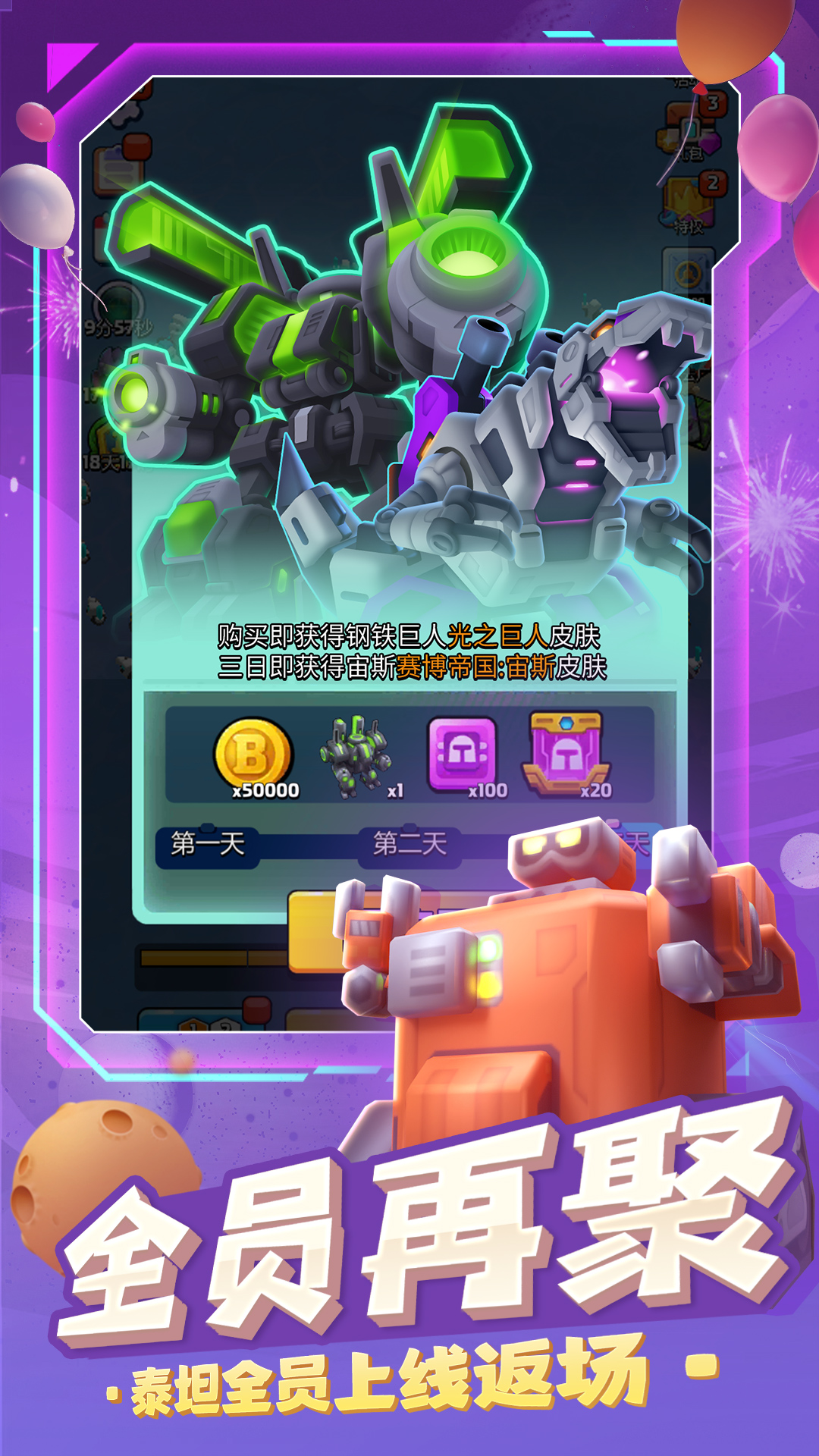 《机甲大作战》是一款机甲题材卡牌放置游戏,你将操纵末日战车,组建强大的机甲战队,收集稀有能源并精心打造装备,以迎接外星入侵的挑战。在神秘多变的太空遗迹场景中,你将与好友并肩作战,守护地球未来的命运。 特色玩法: 【闯关模式】:组建队伍清扫地球残余的外星怪兽,领取悬赏 【挑战模式】:每日挑战经验、装备、材料、世界BOSS等副本,获取丰富物质强化战力 【装备锻造】:低级装备三合一锻造为高级装备,不同机甲更有专属装备可锻造 【PVP玩法】:丰富的天梯榜和跨服赛事,真人竞技决出王者