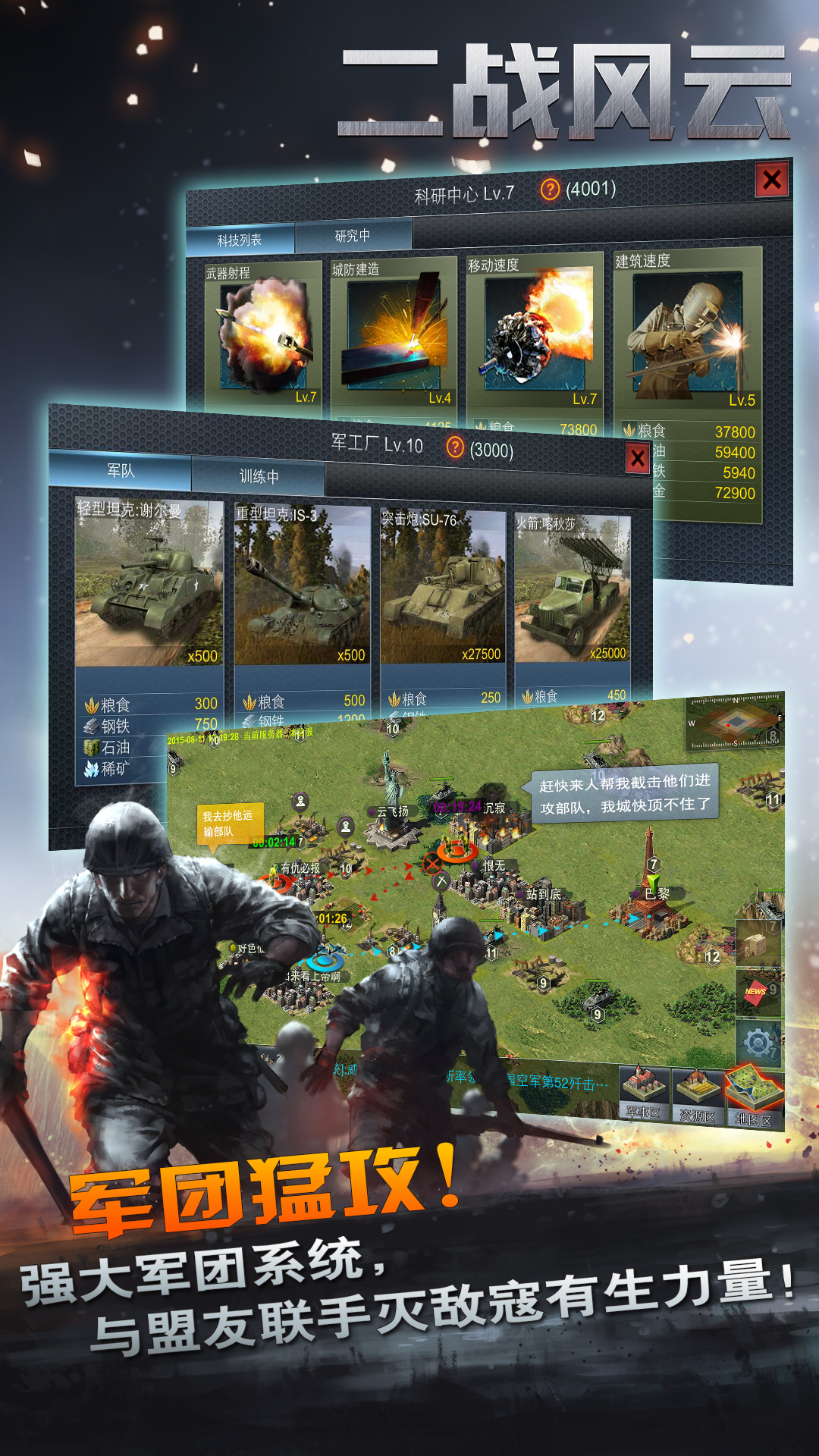 《胜利之吻》是一款以近代战争为背景的战争策略游戏。讲述的是一群具有不同生活经历的独特而迷人的女性,在抵抗侵略军的战争中,帮助盟军抗击侵略者。你将在盟军中扮演指挥官的角色,训练强大的军队,招募美丽的女军官来领导你的军队,联合世界上所有的指挥官来消灭侵略者,并最终建立一支更强大的联盟来维护这个世界的和平! 1. 全新的控制系统 游戏采用了一种突破性的自由控制系统,玩家可以在战场上指挥多个部队。行军,驻军,随心所欲的改变目标,调整作战策略! 2. 生动的战争场景 根据近代时期欧洲的实际地理情况,我们建造了生动的城市和战场,特别是大家都能认出的标志性建筑。此外,我们还模拟了近代战争期间使用的著名战争武器,让您回到那个传奇的时代。 3. 多人实时战斗 玩家间的战斗远比攻略游戏中虚拟的对手要更加复杂、更加吸引人。即便你足够强大你也依然需要其他玩家的帮助,因为战场中与你同时作战的将不仅只有一个敌人,甚至是一个联盟或者更多。 快来加入这个传奇的战场,扩展你的公会领地,展示你的力量,征服这片土地!