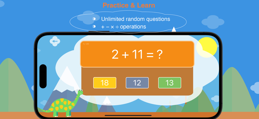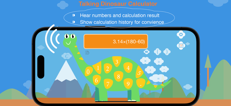 独特恐龙主题设计 告别传统计算器的单调布局,数字巧妙地分布在恐龙身体上的斑点中,带来新颖而可爱的视觉体验。 智能语音播报功能 - 点击数字和符号时自动语音播报 - 计算结果语音输出,无需查看屏幕 - 支持系统语音,语速适中,清晰易懂 便捷计算历史管理 - 自动保存最近10条计算记录 - 长按历史记录可复制结果 - 一键复用历史结果,提高计算效率 18种难度分级练习,从基础到进阶全覆盖: - 基础运算:和等于10的加减法、10以内运算 - 进阶练习:20以内、50以内、100以内、1000以内运算 - 乘法训练:1x1到5x5、5x5到9x9乘法表 - 综合运算:81以内乘除法、整10数乘法、1000以内四则运算 隐私安全保护 - 无需注册登录 - 不收集任何个人信息 - 本地数据存储,安全可靠 适用场景 - 数学启蒙学习 - 基础运算练习 - 家庭学习辅助 - 课堂教学工具