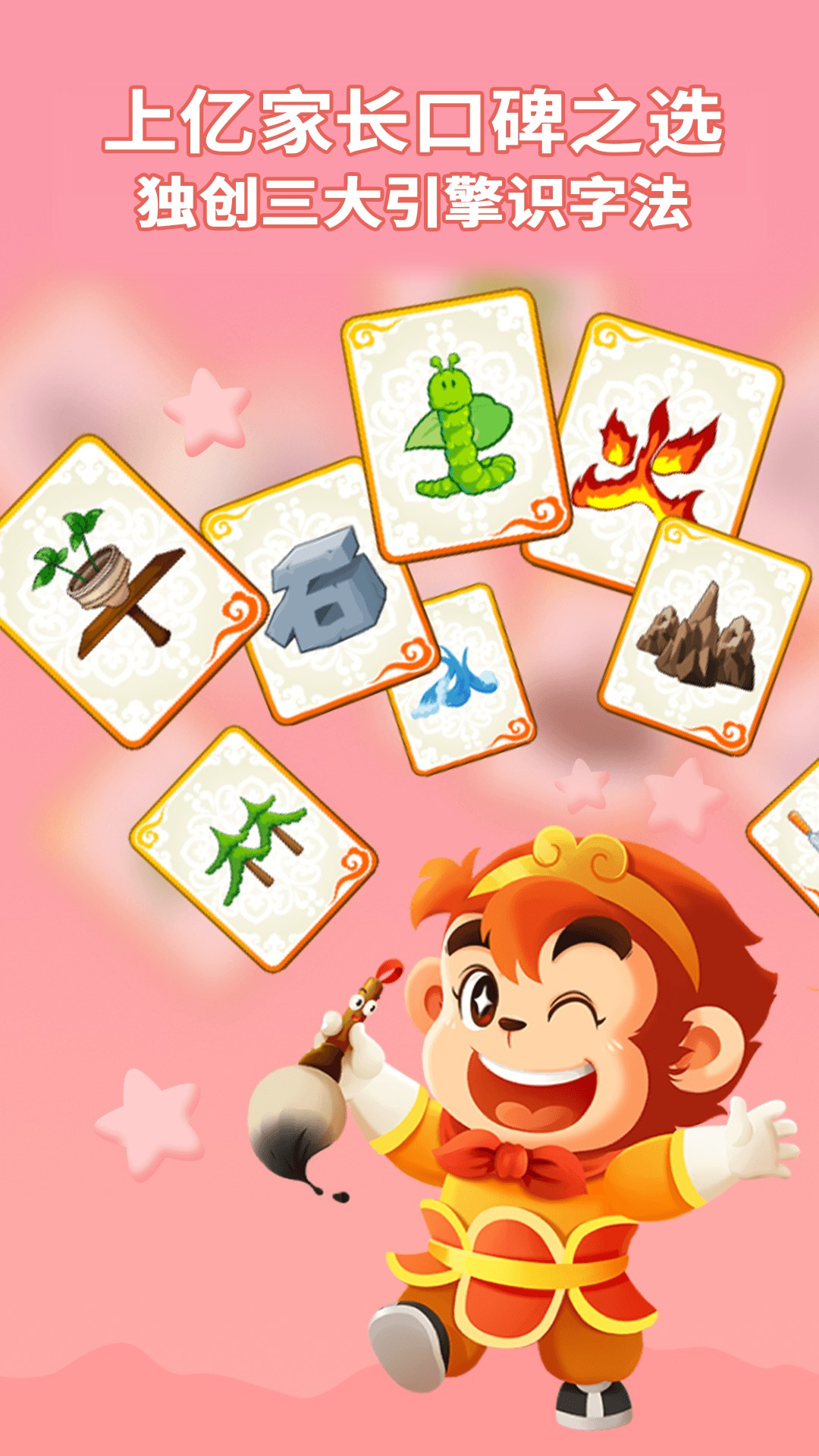 识字效果翻倍,家长省心不累<br><br>千万家庭口碑之选<br>15年专注识字启蒙<br>1000多次迭代更新<br><br>《悟空识字》是一款专注于汉字启蒙的产品,包含1500个常用汉字,5500+常用词句,75本原创绘本。<br>我们用经典名著西游故事,串联识字过程,提升孩子识字兴趣,强化汉字应用场景。通过“象形识字体系”,让孩子通过字形演变变化,直观理解汉字的来源,做到汉字学得快、记得牢。配合科学课程体系下的多样汉字练习,实现汉字的听、说、读、写。三大体系协同运作,让孩子每天只需花费短短十几分钟的时间,一个月后能够开始自主阅读中文幼儿读物。<br><br>产品特色:<br>独创三大识字引擎<br>【象形识字引擎,帮助理解】<br>采用符合儿童认知思维的象形教学,每个汉字都配有象形变化动画,强调汉字特征,加强孩子对汉字的理解,建立长期记忆路径,让汉字学习不再是“死记硬背”,而是“理解后自然记忆”。<br>【科学进阶引擎,巩固记忆】<br>根据儿童记忆特点,设计汉字记忆巩固体系,每天学一组汉字,每个汉字有“认、练、读、写、复习”多个环节,通过“形近字辨析”、“音形意练习”、“绘本阅读”、“错字复习”、“隔天复习”等等模块,让孩子不仅能认能写,还能应用。系统化的学习模式,不仅有助于提高孩子专注力,还能帮助孩子培养良好学习习惯。<br>我们还提供了75篇阶梯阅读内容,通过原创的西游小故事,引导孩子从“识字”过渡到“阅读”。<br><br>【西游情景识字引擎,激发兴趣】<br>以广受喜爱的经典名著西游记为故事背景,激发孩子学习兴趣,通过西游故事强化汉字应用场景,加深汉字记忆。孩子在识字的同时,也能感受传统文化的魅力。<br><br>软件同时还为家长提供了时间管理、学习报告、二孩模式等功能。我们希望孩子快乐识字,高效识字。<br><br>联系方式:<br>微信公众号:悟空识字<br>客服电话:400-666-3016(9:00-17:30)
