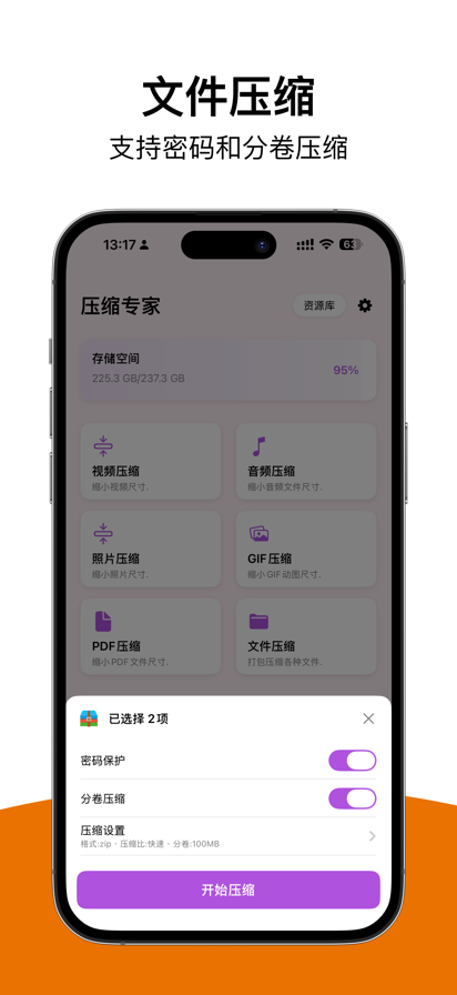 应用功能描述: 欢迎使用【全能压缩工具】——您手机上的高效文件压缩与存储优化专家!无论是工作、学习还是日常使用,它都能帮助您轻松应对各类文件体积过大的困扰,同时智能释放手机空间,让设备运行更流畅。 核心功能亮点: **全格式文件压缩** 支持压缩文件、视频、音频、图片(含PNG、JPG、WebP等)、PDF、GIF等多种常见格式,在保持高质量的同时大幅减小文件体积,方便传输与存储。 **快速打包与分享** 压缩后的文件可一键打包,并通过邮件、社交平台、云存储等多种方式快速分享,提升办公与沟通效率。 **相册空间智能优化** 自动扫描并识别手机相册中的重复与相似图片,智能清理冗余内容,释放宝贵存储空间,让您的相册整洁又高效。 **手机存储深度清理** 不仅压缩文件,还能帮助您系统性管理手机存储空间,删除无用数据,提升手机运行速度与使用效率。 **适用场景:** - 办公文件过大无法发送邮件 - 社交分享时视频、图片体积受限 - 手机存储空间不足、运行卡顿 - 相册杂乱、重复照片繁多 简洁易用的界面,强大且稳定的性能,【全能压缩工具】是您日常文件处理与手机维护的得力助手!立即下载,开启高效数字生活吧! 【隐私政策】 https://aitools-1255469084.cos-website.ap-shanghai.myqcloud.com 联系方式: 邮件:scanner_2018@163.com QQ群: 779753306