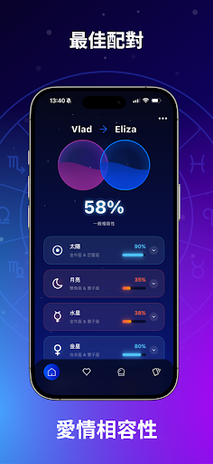 通过十二生肖探索爱情与婚姻的兼容性! 只需从列表中选择您的星座和您所爱之人的星座,然后点击按钮即可。 使用此应用程序来探索您与伴侣的爱情兼容性,无论是您的女朋友还是男朋友。<br><br>在一个充满各种兼容性测试的世界中,从匹配姓名到生日甚至照片,我们相信星座兼容性会产生最可靠的结果。 占星学是一门令人着迷的科学,它可以为你们的关系提供有价值的见解。<br><br>我们的爱情计算器将计算爱情和婚姻兼容性的百分比,为您提供一个明确的结果,表明您和您所选择的人的匹配程度。<br><br>如果您喜欢预测、占星术、命理学或读牌,那么这个应用程序非常适合您。 无论您是深爱着还是正在努力建立新的关系,都可以尝试一下我们的应用程序,并使用我们的爱情计算器探索您的兼容性。<br><br>今天就试试这个爱情测试仪,并开始使用我们的计算器来发现您的最佳爱情匹配!