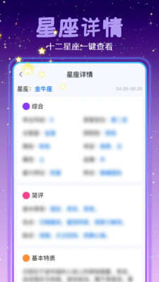 星座探索APP为大家带来了一款轻松有趣的星座知识软件,帮助你认识12星座的性格特点。喜欢了解星座的朋友们可以在这里发现更多有意思的内容,一起成为星座爱好者! 星座探索APP提供每个星座的独特个性解读,星座是一个充满趣味的话题,虽然不一定完全符合科学原理,但它为我们的日常增添了不少色彩,帮助我们以新的视角观察生活、发现乐趣。 功能: 提供十二星座的每日、每周、每月及全年主题指引,定期更新星座相关内容,同时介绍星座的背景故事和性格解析,助你更好地理解自己与他人的性格特质。 包含星座查询、互动话题、性格解读、生日星座查看、个性分析及相关资讯,还有星座之间的趣味讨论分享,为你的生活与情感提供启发,打造既专业又有趣的星座内容体验。