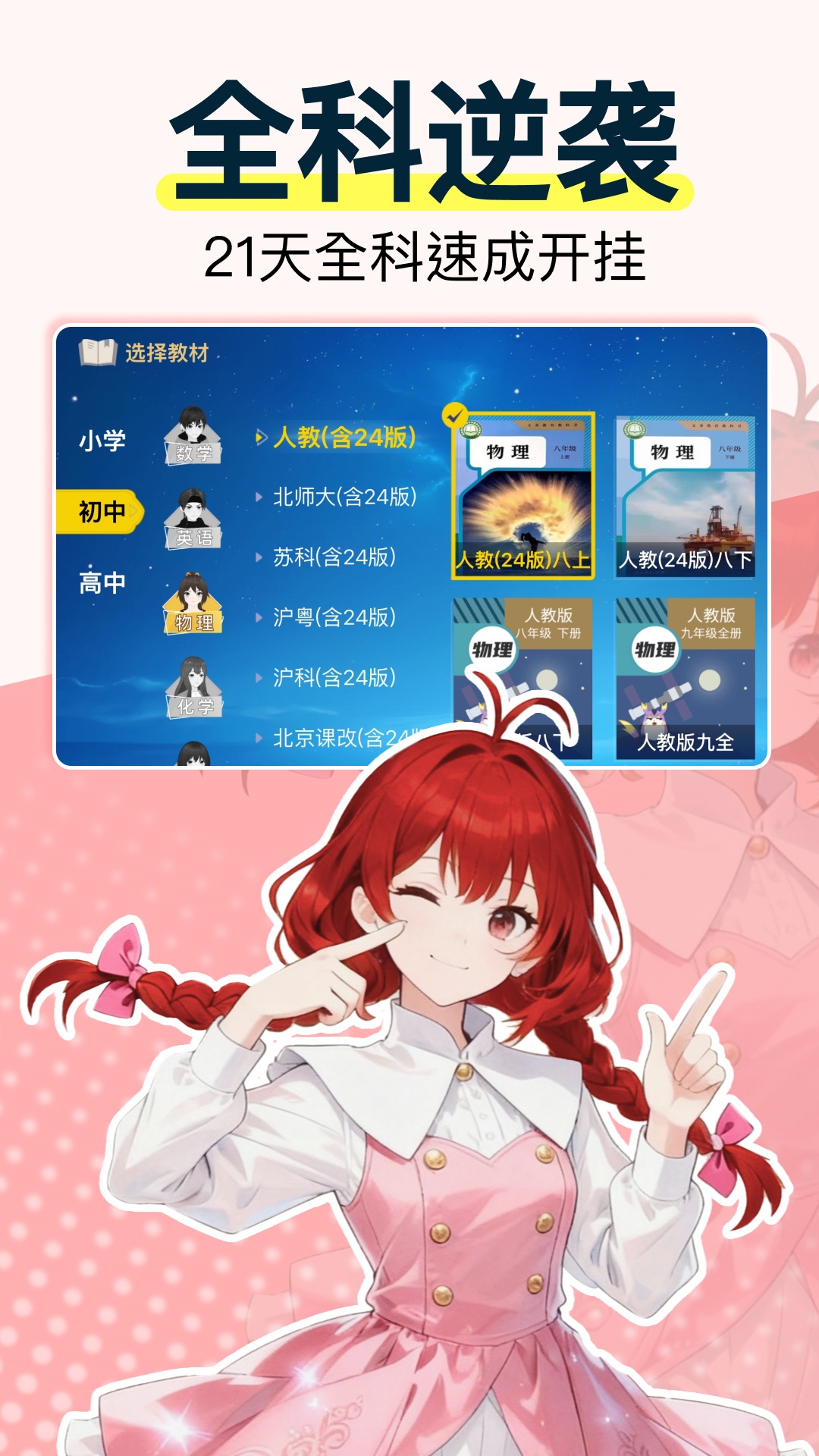 欧拉AI学面向小学、初中、高中全学段学生,囊括数学、物理、化学、生物、英语和语文 6 大主科,适配全国多版本教材。凭借3D动画视频技术,融合丰富剧情和特有IP,打造超有趣的二次元动画课程,让学习不再枯燥,知识吸收so easy~ 【功能超亮眼】 1、免费试学超贴心:各版本教材都有免费体验内容,尽情感受动漫课程的魅力,轻松爱上学习! 2、校内同步超省心:小学、初中、高中各学科课程全覆盖,不管你是夯实基础,还是冲刺学霸,都能满足! 3、动画超带感:趣味动画情节 + 生活场景,把知识点掰开揉碎讲,通俗易懂,根本停不下来! 4、学练结合超高效:智能推送练习题,边学边练,加深理解,知识记得牢牢的! 5、真题试卷库超丰富:海量试题按章组卷,想怎么刷就怎么刷,还支持离线下载,随时随地开练! 6、学习激励超诱人:完成每日任务,就能拿奖学金,惊喜好礼等你来薅! 【联系我们】 您的建议对我们至关重要,任何想法请写在评论区或者与我们联系,。 官方QQ群:729164343 客服电话:15972045492 邮箱:2367754320@qq.com 官网:http://www.ola100.com/ 快来拥抱全新的【欧拉AI学】,开启这场二次元学习冒险之旅吧!