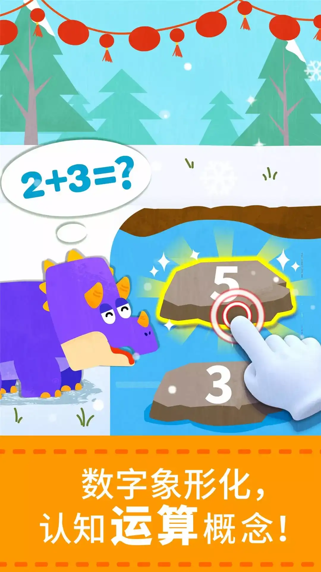 【宝宝数字世界】涵盖33个常识、37集数字儿歌动画、1313个趣味练习,打造“有趣又有料”的数字乐园。 将数量认知与生活常识结合,兼具趣味性和科普性,激发认知兴趣。 产品概述 【33个常识】 —— 数量认知 包含写数字、点数、顺数、序数、相邻数、数的大小、按数取物等互动。 了解数字0-9外形,规范数字书写,了解20以内的数数,认识数与量的关系。 —— 基础加减 包含数与量的加减、10以内数字合成与分解、10以内数字心算等互动。 了解基础加减法,发现运算规律,了解解题技巧,提高口算心算能力。 —— 图形形状 包含拼搭七巧板创造新图形、归类和匹配几何图形、拼图、找茬等互动。 练习拆分和组合图形,认识图形特征,激发空间想象力,提高敏锐观察力。 —— 趣味推理 包含分类颜色、配对形状、比较大小、找规律、排序、推理判断等互动。 学会根据形状或大小等进行分类,根据已知条件推理结果,激发思考力。 【4大了解模式】 1、场景化 数字拟化为卡通角色,抽象的概念生活化,从中认识数量的作用,感受趣味性。 2、交互式 融入儿童喜欢的恐龙和经营元素,设计交互操作,让宝宝对基础加减保持热情。 3、多维度 含恐龙村、动画城等模块,从视听触觉三个角度,激发认知兴趣。 4、闭环式 趣味互动,加深印象,认知更有方向性,提高对数与量的理解程度。 【宝宝数字世界】持续更新! 更多早教互动,即将上线! 宝宝巴士BabyBus是专注打造儿童启蒙数字产品的原创品牌,累计服务全球5亿家庭用户。宝宝巴士秉承“快乐启蒙”的理念,用奇妙有趣的方式,为儿童量身定制以“好听国学故事、好看儿歌动画、好玩互动APP”为特征的海量数字启蒙内容,让孩子趣味认知、感受“真、善、美”。 宝宝巴士BabyBus已发布200多款APP,推荐使用宝宝巴士儿歌、宝宝巴士故事、宝宝巴士奇妙屋、宝宝巴士、宝宝恐龙家园、化妆小公主、宝宝航海挑战、奇妙美味日记、奇妙生日派对、奇妙鲜花房、奇妙恐龙帮帮队、奇妙手工调色、奇妙森林历险记、奇妙艺术日记、宝宝爱自然、照顾小宝宝、中华美食、奇妙好习惯、宝宝地震安全、奇妙星际厨房、宝宝学配对、奇妙农场、糖果工厂、雪糕工厂、宝宝小船长、奇妙咖啡餐厅、宝宝小画板、宝宝运动会等APP。 欢迎联系 微博:@宝宝巴士 官网:http://www.babybus.com 邮箱:cn@babybus.com