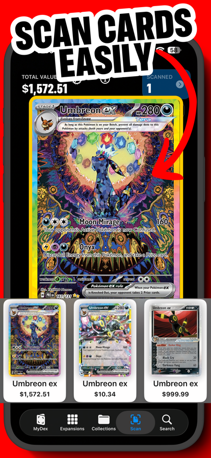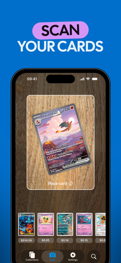 Discover the ultimate unofficial tool to scan your Pokémon cards. Poke Scan is the fastest and easiest way to scan and manage your Pokémon cards. Instantly track card details, market prices, and build your collection with ease. === Key Features === * Instant Card Scanning & Price Tracking Simply scan your Pokémon TCG cards using your camera to instantly access detailed card information, including rarity, set, and live market prices. Get links to top marketplaces such as eBay, TCGPlayer, and CardMarket for seamless buying, selling, or trading. * Collection Management Track your personal card collection easily. Add cards to your collection and keep track of its total value. Sort your cards by price, set, name, and more to organize your collection just the way you want. * Browse Expansions Explore every Pokémon TCG series and sets, from the classic collections to the newest releases. Dive into bulk pricing information and detailed card data, so you can always stay informed and make smart collecting decisions. * Real-Time Market Updates Benefit from daily refreshed pricing to make informed decisions whether you’re buying, selling, or trading your cards. * No Sign-Up Required Get started immediately with full access to all features. No account creation, sign-up, or login is needed. * User-Friendly Interface Enjoy a seamless and intuitive experience that makes managing your Pokémon TCG collection fun and efficient. === How It Works === 1. Scan Your Cards Open the app and use your smartphone camera to scan your Pokémon card. Detailed information and market prices appear instantly and are saved to your history. Tap a marketplace to buy, sell, or trade. 2. Build Your Collection Add scanned cards to your collection with a single tap. Instantly view the total value, number of cards owned, and sort them by your preferred criteria for easy management. 3. Browse Series & Sets Explore a complete database of all Pokémon TCG series and sets. Discover new cards and compare prices at a glance. *** Our app is FREE to download. However, you can upgrade to premium via in-app purchases to unlock advanced features, such as unlimited scans and an ad-free experience, ensuring you get the most out of your Pokémon TCG journey. Thank you for choosing our Unofficial Pokémon TCG Card Scanner & Collection Manager. Support us by sharing the app and leaving a 5-star review on the App Store. Your support helps us continue improving the app and delivering a superior experience for collectors and traders alike. Privacy Policy: https://lowly.notion.site/Privacy-Policy-197ce6fdc6ab8185a908cacf12608bad?pvs=4 Terms & Conditions: https://lowly.notion.site/Terms-Conditions-197ce6fdc6ab81f5a3c0d16953ee3ac0?pvs=4 This app is an unofficial tool and is not affiliated with, endorsed by, sponsored by, or in any way officially connected to The Pokémon Company International, Nintendo, Game Freak, or Creatures Inc. Pokémon, the Pokémon Trading Card Game, and all associated logos and trademarks are the property of their respective owners. Any use of these names, images, or other intellectual property is solely for the purpose of identification and reference.