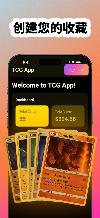 ProDex TCG is the best app to manage your Pokémon card collection, including your custom and smart lists, your decks, and even your graded cards! Collectors, players, and enthusiasts, this app is the ultimate tool to organize, track, and optimize your Pokémon card collection, thanks to the following features (and many more): - Complete catalog – Access all Pokémon cards by Pokémon, expansion, artist, and more. - Advanced customization – Tailor the app to your specific needs with in-depth options. - Enhanced collection management – Add your cards in an instant or use detailed settings: condition, version, quantity, etc. - Accurate price tracking – Set your own prices per card and condition or use adjustable general prices. - Decks and custom lists – Create, organize, and refine your decks and card lists with advanced options. - Graded cards – Easily manage your PSA, PCA, CGC, and other certified cards. - Smart lists – Quickly find cards that match simple or advanced criteria. Download now and take your Pokémon card collection to the next level! This unofficial app is not affiliated with, endorsed, or supported by Nintendo or The Pokémon Company. Pokémon is a trademark of Nintendo and The Pokémon Company. Some images used belong to Nintendo, GAME FREAK, or The Pokémon Company and are protected by copyright. They are used here under fair use laws in the United States or the French Intellectual Property Code. Pokémon © 2002-2018 Pokémon. © 1995-2018 Nintendo/Creatures Inc./GAME FREAK inc. Terms of Use (EULA): https://www.apple.com/legal/internet-services/itunes/dev/stdeula/