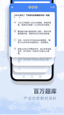 考神君用心陪伴整个高中时刻,助你学习一臂之力!! 精选高中语文语法、修辞手法、文言文、散文、议论文等常考内容,帮助你查漏补缺高效提分!练习后更有智能错题分析,让你的薄弱点一目了然,帮助你针对性学习语文,刷题效率翻倍,学习之路畅通无阻! 1.趣味闯关模式,等你来战! 精选研发游戏化的闯关模式,让复习变得更加有趣,同时还会帮助你检验课堂学习效率究竟如何哟~智能督促你的学习,让你的效率一高再高!冲刺高分 2.语文期末常考知识点总结 涵盖字音字形词语、语法、修辞手法、成语、文言文、标点符号、语病、句子衔接等期末常考内容,附带详细题型解析,帮助你稳扎稳打巩固基础,题目再变也能轻松应对! 3.分类学习模块,科学又高效! 将易错本,笔记本,自学视频,自学音频四大模块科学分类,让你的思绪更加清晰,刷题事半功倍! 4.真题知识点回播。 古代诗歌鉴赏、散文阅读、议论文精讲......随时随地想听就听,自由播放可反复复习,想听哪就听哪,自由自在!