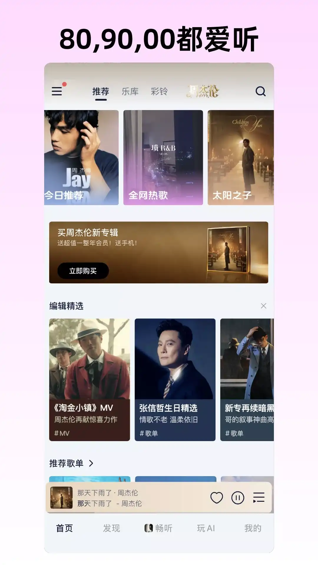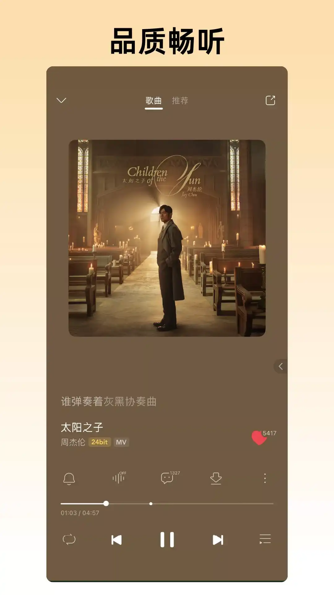 【重磅来袭】周杰伦全新专辑《太阳之子》热卖中;买专辑送会员、得好礼,超多权益等你来拿! 【无限畅听计划】每日听歌不花钱!千万曲库0门槛畅听,登录即可解锁全曲库,听歌自由,就是这么简单! 【曲库升级】版权扩容,咪咕音乐与滚石唱片、相信音乐、哇唧唧哇等达成版权合作,宝藏音源实时更新,精彩好歌抢先解锁,你的单曲循环由我们承包! 速来按下播放键。 【音乐卡片】全新动态音乐卡片,匹配多种场景,让你的歌单和心情一起“动”起来。 【臻3D】3D沉浸全景声,完美适配超清音质,带你体验“声”级音乐现场,好听不止于此! 核心功能: •听 【千万曲库】4000万正版曲库,新歌发布,覆盖华语海外、内地港台等热门新歌,让你不再歌荒; 【极光音效】独享HI-FI房间,新增「纯净ACG」「动感电音」等6款等特色音效,还原至臻听感; 【热门推荐】在“我喜欢的”开启听荐模式,让AI推荐的歌曲更懂你心; 【一起听