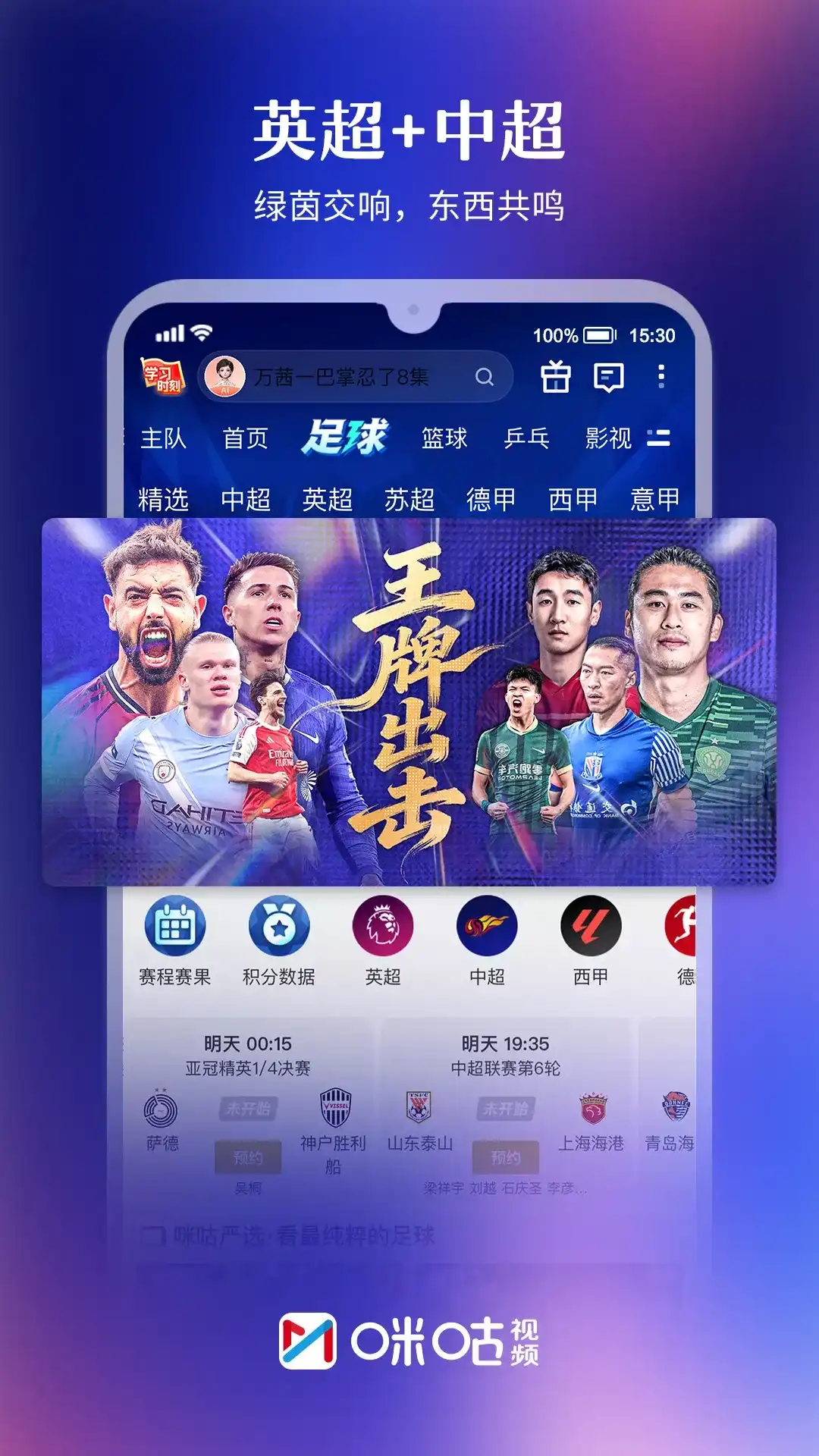 各大赛事精彩不停歇,看各路豪强实力对决!大咖解说、4K超高清,海量热门赛事直播锁定咪咕视频! 电视剧《我们的河山》看共创抗日救国农救会书写保家卫国的热血长歌;《暗潮缉凶》看潮起凶落,连海平火眼金睛、明察秋毫。电影《哪吒之魔童闹海》看魔童哪吒逆天改命,踏浪弑神;《酱园弄·悬案》看突破尺度还原民国奇案,刀锋之下暗藏时代密码。综艺《歌手2025》看十年淬炼,用音乐丈量时光;《天赐的声音6》看音浪狂潮天籁对决。上咪咕视频,给你好看! 热门赛事热血出击:中超、英超、西甲、德甲、意甲、法甲、男篮亚洲杯、NBA、CBA、WTT、UFC 人气热剧追不停:《我们的河山》《暗潮缉凶》 热播影片尽享:《哪吒之魔童闹海》《酱园弄·悬案》 热播综艺宅家看:《歌手2025》《天赐的声音6》 【特色剧场 海量资源任你挑选】 好莱坞大片、高分经典TVB热剧、限免抗日大剧、二次元热血动漫持续更新中,等你来嗨! 【人气动画 少儿动漫乐翻天】 《小猪佩奇第十一季》、《哆啦A梦第五季》、《宝可梦地平线第一季》、《秘密内幕:女警的反击》等与你乐享卡通时光! 【千路卫视高清直播 零时差畅看】 电视直播、央视专区、卫视及地方台、特