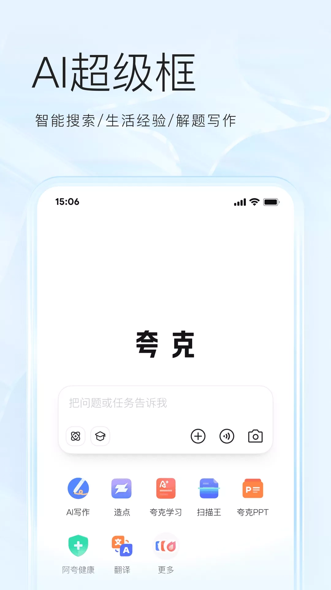 夸克,你的全能AI助手。 能在生活经验、日常学习、职场办公等多个场景帮你高效解决问题。 生活遇问题?找夸克AI超级框: ● 问啥都懂: 旅行攻略、职业选择、生活窍门... 有啥疑问,随时搜一搜。 ● 拍照问夸克: 看到不认识的花草、文物?看不懂的体检报告?拍个照,夸克AI马上告诉你。 学习没方向?夸克老师带你学: ● AI解题大师: 哪里卡壳讲哪里,更教你举一反三,学得更明白。 ● 专属AI老师: 帮你规划学习路径、制定提升计划,AI老师随时陪着你。 办公要提效?夸克AI来加速: ● 报告/论文不发愁: 输入你的主题,大纲、内容一气呵成。 ● PPT秒搞定: AI自动生成逻辑清晰、颜值在线的PPT,多端协同在线编辑。 创作没灵感?夸克AI帮你点燃: ● 图片/视频都能做: 智能润色指令,根据描述和参考生成图片、视频;海量特效模板,超多创作灵感。 ● 修图超简单: 一句话改图,去路人、改表情、提升画质,旅行大片轻松搞定。 文件照片多?交给夸克网盘: ● 照片、文件安心存:超大空间,安全存储;多端同步,手机电脑随时看。 想放松一下?夸克陪你一起嗨: ● 小说随心看: 海量热门小说无限畅读