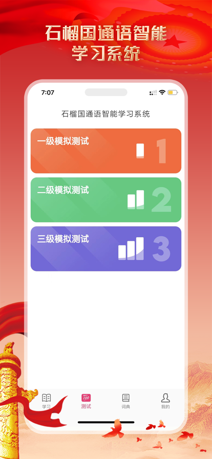 普通话水平测试APP,普通话等级考试一站通关神器! 普通话水平测试软件包含普通话智能测评,普通话发音报告,普通话常错字词集等多项功能,轻松应对全国普通话水平测试考试,助力你改善普通话口语发音,说一口标准的普通话! 1. 普通话智能水平测试 真实模拟普通话考试流程,普通话AI智能语音技术测评,帮你测评普通话水平 2. 普通话发音报告 系统根据您普通话的前后鼻,翘舌音等多项评估,生成智能报告,定位普通话发音弱点,传授普通话发音技巧 3. 普通话常错字词 智能收集你的常错字词集,普通话复习更具效率。还有收藏功能,供你自由选择想要练习普通话的字词。