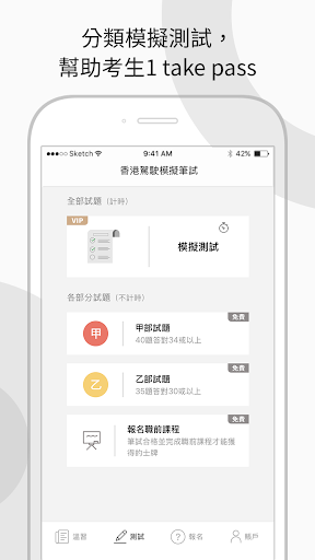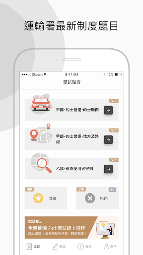 1.题目练习<br><br>收集愈1000题过往笔试例题及精选试题,完全免费使用。题目分为标志题及文字题,内容完全符合最新运输处笔试范畴,助您做好考试准备。<br><br>2.模拟笔试<br><br>按照真实笔试规则,计分及合格标准按照运输处最新要求。 App内提供倒计时功能,完成笔试后即时知道结果,助您加强考试信心。<br><br>3.题目收藏<br><br>一键将您的重点题目加到收藏列表,方便快速重温。