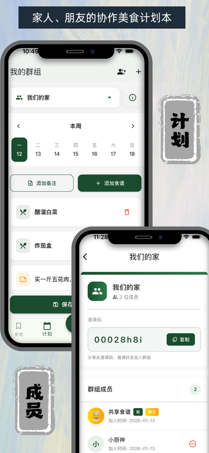 共享食谱是一款AI驱动的智能烹饪助手,让做饭变得更简单、更高效、更有趣! **AI黑科技** 1、拍照3秒生成完整食谱 - AI智能识别菜品,自动生成食材用量和制作步骤 2、链接一键导入 - 支持从小红书、微博等平台导入食谱(进行中) 3、手动创作 - 记录家传秘方和独家配方 **效率革命** 1、烹饪流程并行规划 - 烧水的同时切菜,煲汤的同时炒菜,省时30%-50% 2、智能任务编排 - 科学安排步骤顺序,多道菜轻松搞定 3、实时进度追踪 - 每步完成情况一目了然 **家庭朋友协作** 1、创建家庭群组 - 全家人共享食谱库和饮食日历 2、同步美食计划 - 每个成员都能参与规划,让美食时光更温馨 3、多人协同管理 - 共同维护家庭美食档案 **智能管家** 1、购物清单 - 选择本周食谱,AI自动提取食材并智能去重 2、分类整理 - 按蔬菜、肉类、调料分类,采购又快又准 3、实时同步 - 家人在超市也能看到清单 **私人食谱库** • 收藏喜欢的食谱,构建专属美食宝典 • 创建食谱合集,分类管理更方便 • 搜索功能强大,快速找到想做的菜 无论您是烹饪新手还是美食达人,共享食谱都能让您的厨房生活更轻松、更有条理。立即下载,开启智能烹饪新体验! 使用条款: https://www.apple.com/legal/internet-services/itunes/dev/stdeula/