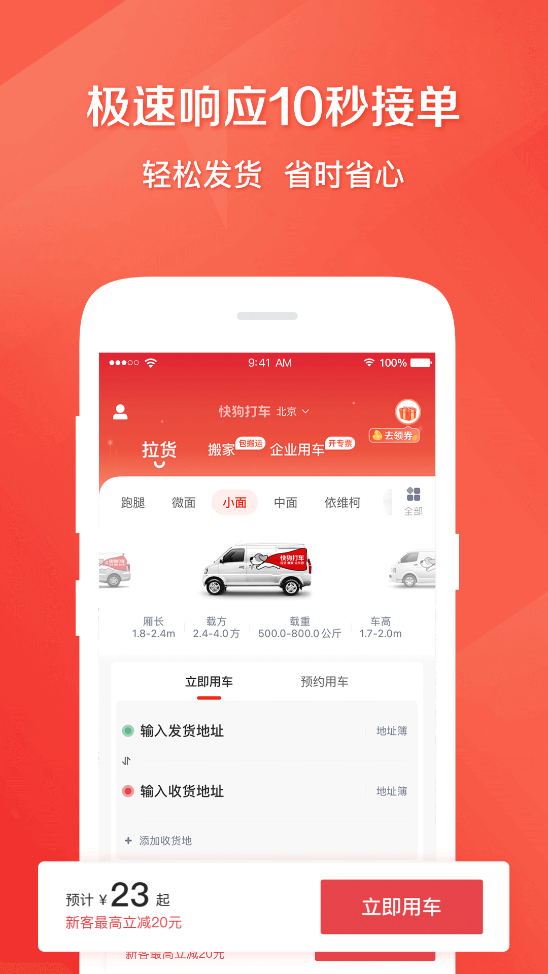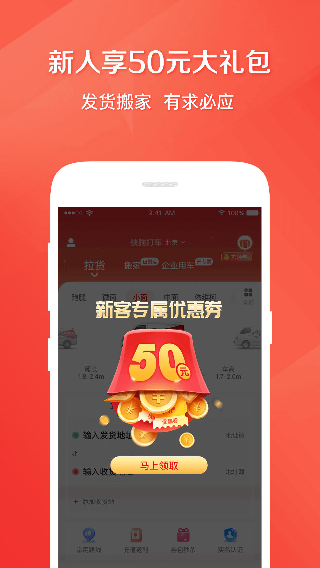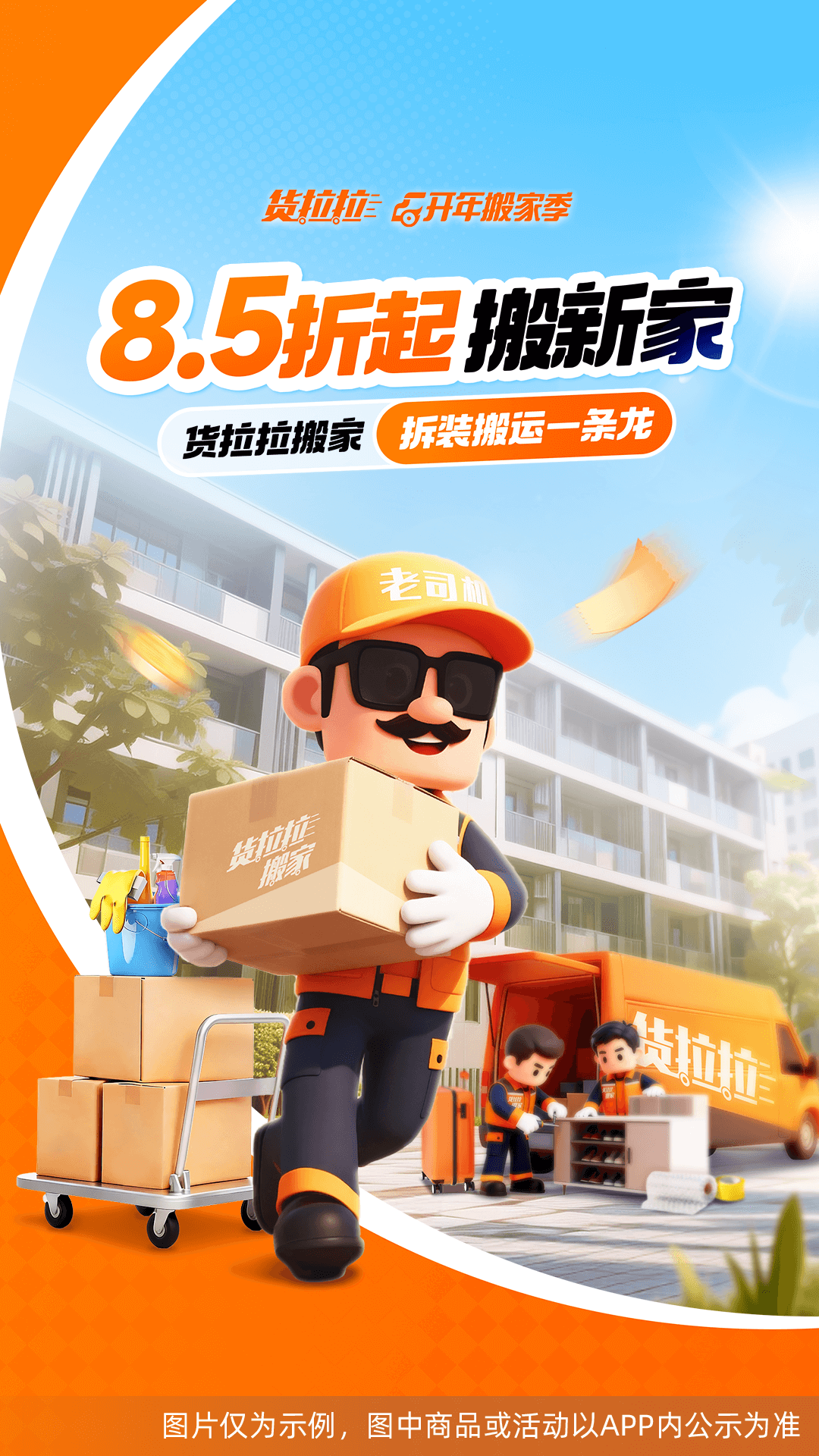 拉货就找货拉拉,啥车都有都便宜! 货拉拉是一家互联网物流商城,提供同城/跨城货运服务,涵盖从面包车到17.5米货车多种车型,用户一键呼叫,司机实时抢单;企业版提供月结账期、定制配送等服务;零担物流,提供直达全国、门到门的长途物流运输服务;汽车租售,满足司机和企业租车购车需求。 为什么选择货拉拉 【一个软件,满足你超多需求】 拉货搬家发整车一键秒杀!全国各地,随时随地!同城拉货跑腿、跨城直达、上门搬家、建材运送、食品配送、电器家私运输、生鲜冻品冷链运输、大件运送、宠物出游、展览物资运送、批发、企业用车......只需一键叫车,最快1秒接单,最快1分钟上门,轻松解决你所有的用车需求。 【优点多多,让你舒心用车】 够省!统一计价,不再被坑! 够快!快速响应,准时到达,最快1秒接单,最快1分钟上门! 够好!司机专业培训,全程拉货超放心! 够准!你叫小货车不会来面包车! 够炫!各种活动,奖励多、花样多,好玩还能再赚用车券! 够全!小面包车、中面包车、小型厢货,小型平板,中货车,冷藏车,大货车车型:已开通5米2、6米8、7米6、9米6、13米和17米5! 【多地覆盖,去哪用车都方便】 覆盖360+座中国内地城市:北京、上海、深圳、广州、天津、武汉、济南、青岛、宁波、苏州、杭州、南京、福州、厦门、佛山、东莞、惠州、中山、长沙、成都、重庆、西安、沈阳、郑州、 珠海、合肥、嘉兴、南宁、昆明、金华、石家庄、太原、温州…. 【最后别忘了看这里】 对货拉拉有什么建议和感想,可以点开货拉拉APP中的“客服中心”-“意见反馈”给我们留言反馈,当然你也能通过以下方式: 1.全国热线:95036 2.官网:huolala.cn 3.货拉拉微信服务号:huolalagz 4.新浪官方微博:@货拉拉APP