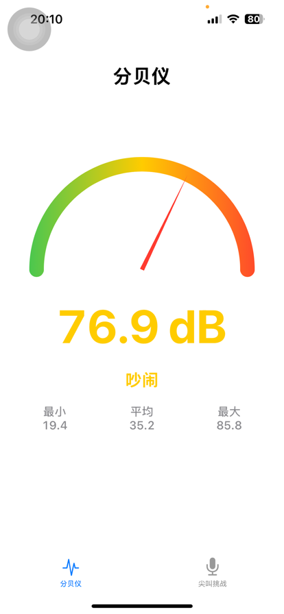 分贝仪是一款为你量身定制的专业噪音检测工具。只需打开手机,即可随时随地精准测试周围环境的噪音等级。无论是评估居住环境的安静程度,还是关注工作场所对听力的潜在影响,它都能为你提供直观、准确的数据参考,时刻守护你和家人的听力健康。 【核心功能】 • 精准分贝检测:采用高精度音频处理算法,实时捕捉周围环境声音,迅速且精准地将其转化为 dB(分贝)数值并在仪表盘直观呈现。 • 多维度数据跟踪:不只有实时分贝!应用会自动记录并统计测试面板的“最小值”、“最大值”以及“平均值”,让你对所处环境的噪音波动状况了如指掌。 • 智能噪音评级:贴心提供环境状态文字提示及颜色预警(包括:听不见、安静、正常会话、吵闹、损伤听力、非常危险),让你秒懂当前噪音对健康的影响,以便及时做出防护。 • 趣味尖叫挑战:这不仅是一个冷冰冰的测试工具!即将开放的“尖叫挑战”模式,让你尽情释放生活压力。大声喊出来,看看你的嗓门和爆发力能冲破多高的分贝记录!