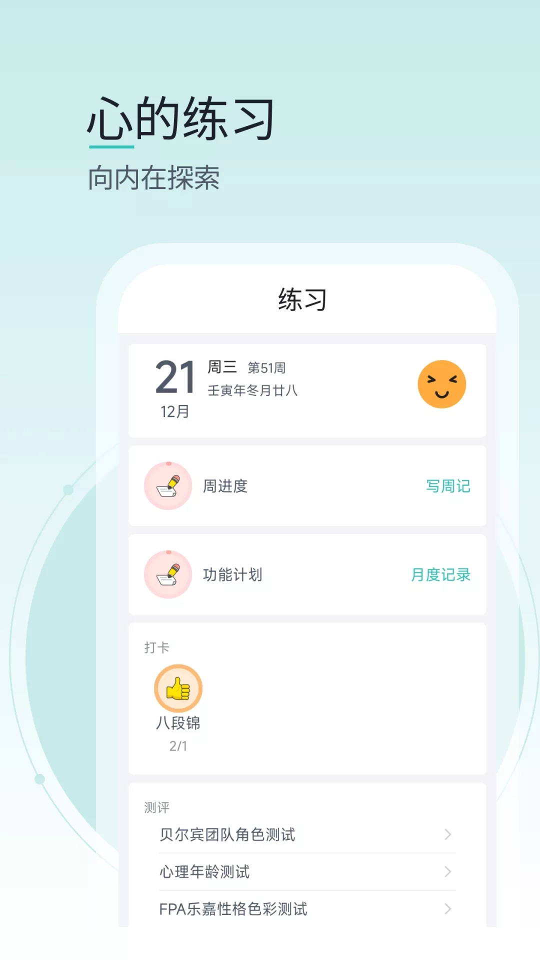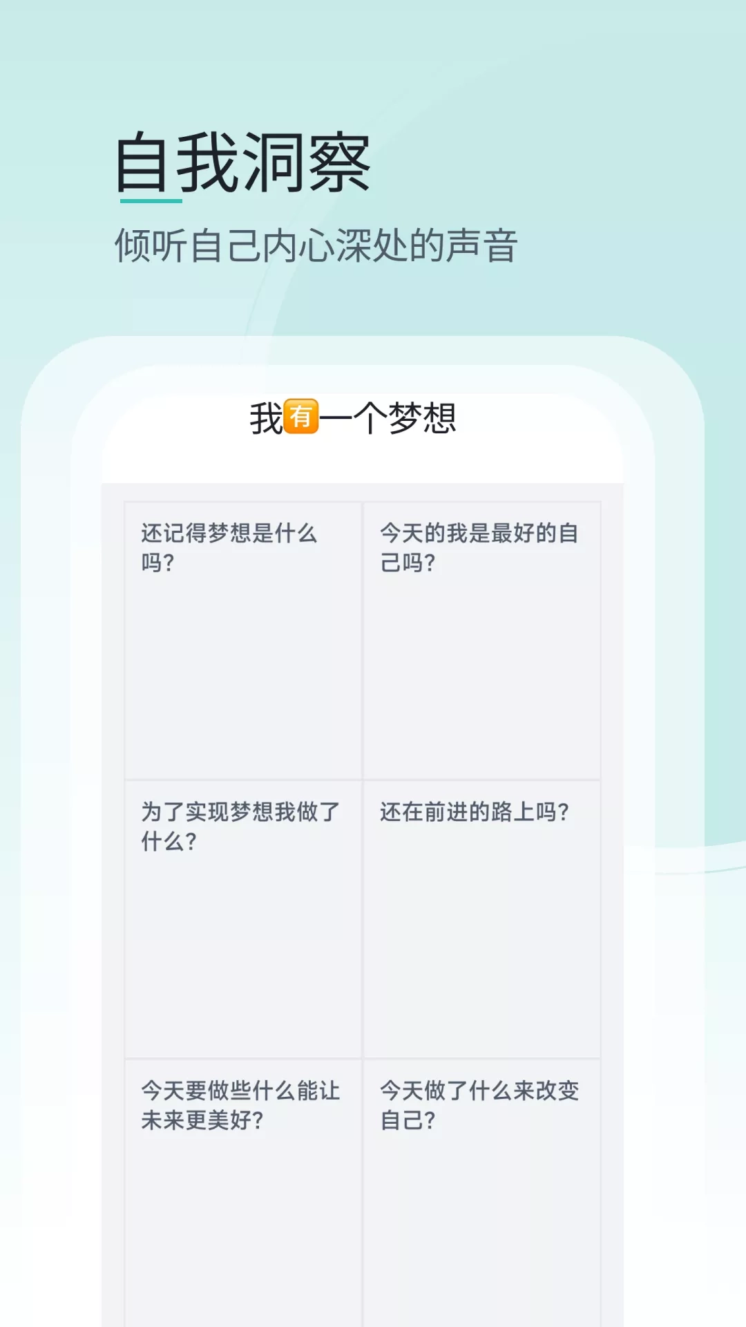 这个世界并不总是温柔,在黑暗的时候,要成为自己的光。 【记录感受】 「壹象限」是你的心情日记本,晴也好,雨也好,用简单的表情和色彩记录,还原心情的起伏变化。 【自我洞察】 「壹象限」是你的私人咨询助理,倾听内心深处的声音,厘清生活中的纷扰烦忧,了解到底是什么在影响你。 【养成习惯】 「壹象限」是你的成长小助手,采取一点点的行动,陪你一起感受生活的点点滴滴。 【认识自己】 「壹象限」是你的人格面具探测仪,包含心理健康、性格类型、职业规划、抑郁焦虑等多个领域的测评量表,寻找潜意识深处的原型。 在成长路上,我们需要尝试倾听和理解自己,学会欣喜于自己灵魂的独特之处,哪怕与其他人并不相似。每天向前一小步,逐渐积累独属于自己的蜕变之光。
