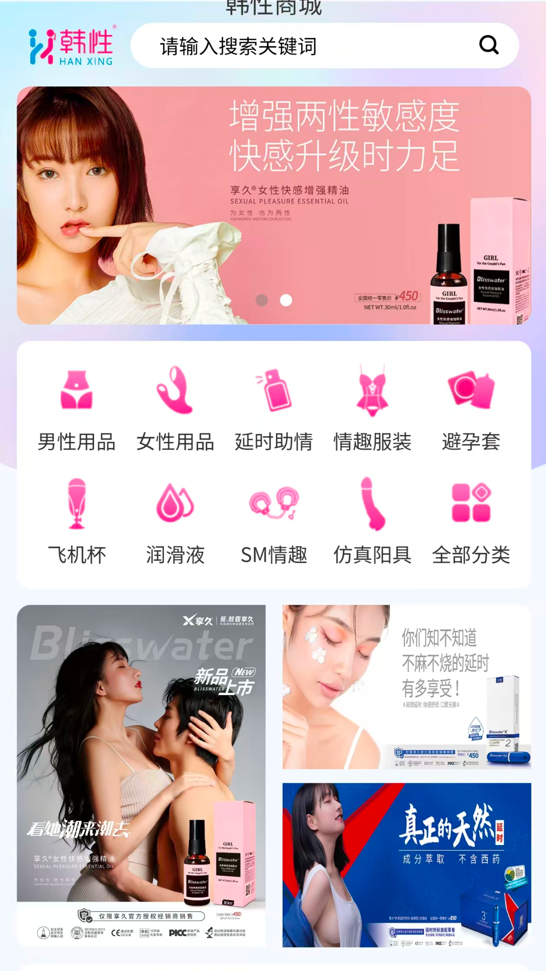 粉嘟嘟,乐悠悠!<br>粉色两性情趣商城,正品保证,私密配送。<br>粉色两性情趣商城是一款专为成年人打造的情趣用品购物APP,给你的情趣生活添加新奇刺激的体验,让自己成为有情趣的人! <br><br>粉色成人专注两性健康,两性用品,情趣用品,情趣生活,情趣玩具,情趣内衣,是成年夫妻情侣单身男女的性福生活的选择。<br>两性生活的网上情趣商城,延时喷剂,避孕套,情趣内衣,各式两性用品玩具应有尽有!<br>给你性价比爆高的情趣商品,各类情趣游戏玩具,有情趣的情侣用品,开启你和TA的趣味性福生活。<br><br>【品类齐全】网罗各类男性玩具、女性玩具,情侣用品,为您打开两性情趣世界大门。<br>【新人福利】新人免费领好物!限时抢购,买一送一,充100送50优惠不停。<br>【保密贴心】正品热卖,保护隐私,快递小哥秘密配送,安心享受情侣小恩爱。<br>【情趣用品】成人商品买手力荐情趣用品,只买对的不买贵的。<br>【情趣内衣】高人气的情趣内衣,款式各样,满足你的各种不同需求。<br>【计生用品】无论是超薄003,还是无感001,杜蕾斯、冈本、杰士邦各类大品牌安全套套任你选择。<br><br>——我们的特色——<br>【专业客服】一对一专属客服情趣顾问为你解答问题;<br>【正品严选】商城所有上架产品均经过严格刷选,确保正品安全;<br>【隐私保护】私密配送,拒绝实体店的尴尬,守护您的情趣小秘密;<br>【超值优惠】直接与厂商合作,降低成本,超低价格购得高质量的情趣商品;<br>【屏蔽大数据】杜绝淘宝京东拼多多购物痕迹,粉色无痕购物保护隐私不尴尬。<br><br>粉色两性情趣用品商城,情趣用品专卖,做情趣,我们是认真的,情趣大师带你飞。<br><br>注:未满18岁禁止下载使用
