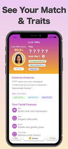明星脸匹配——拍张照片,让AI帮你找到你的明星脸!<br><br>电视和YouTube热门推荐。<br><br># 功能介绍<br><br>・AI人脸识别:用相机拍照,即可获得即时分析。<br><br>・寻找你的匹配对象:看看你长得像哪位明星/艺人。<br><br>・多种类型:YouTube博主、演员、喜剧演员、偶像、模特、国际名人。<br><br>・分享结果:将你的匹配结果和相似度评分分享给朋友。<br><br>・适用人群:家人、朋友、情侣——非常适合学校、工作休息和聚会!<br><br># 使用方法<br><br>1. 选择性别和类别。<br><br>2. 打开相机,拍摄一张人脸照片。<br><br>3. AI分析你的面部特征。<br><br>4. 查看你的匹配结果、评分和特征。<br><br>5. 分享你的结果。<br><br># 注意事项和隐私<br><br>・不同角度的拍摄效果可能有所不同——建议尝试正面和侧面照。<br><br>・应用内拍摄的照片不会被保存。<br><br>・图片仅用于匹配,绝不会用于其他用途。<br><br>・请负责任地使用。<br><br>你可能比想象中更有魅力——现在就来寻找你的明星脸吧!