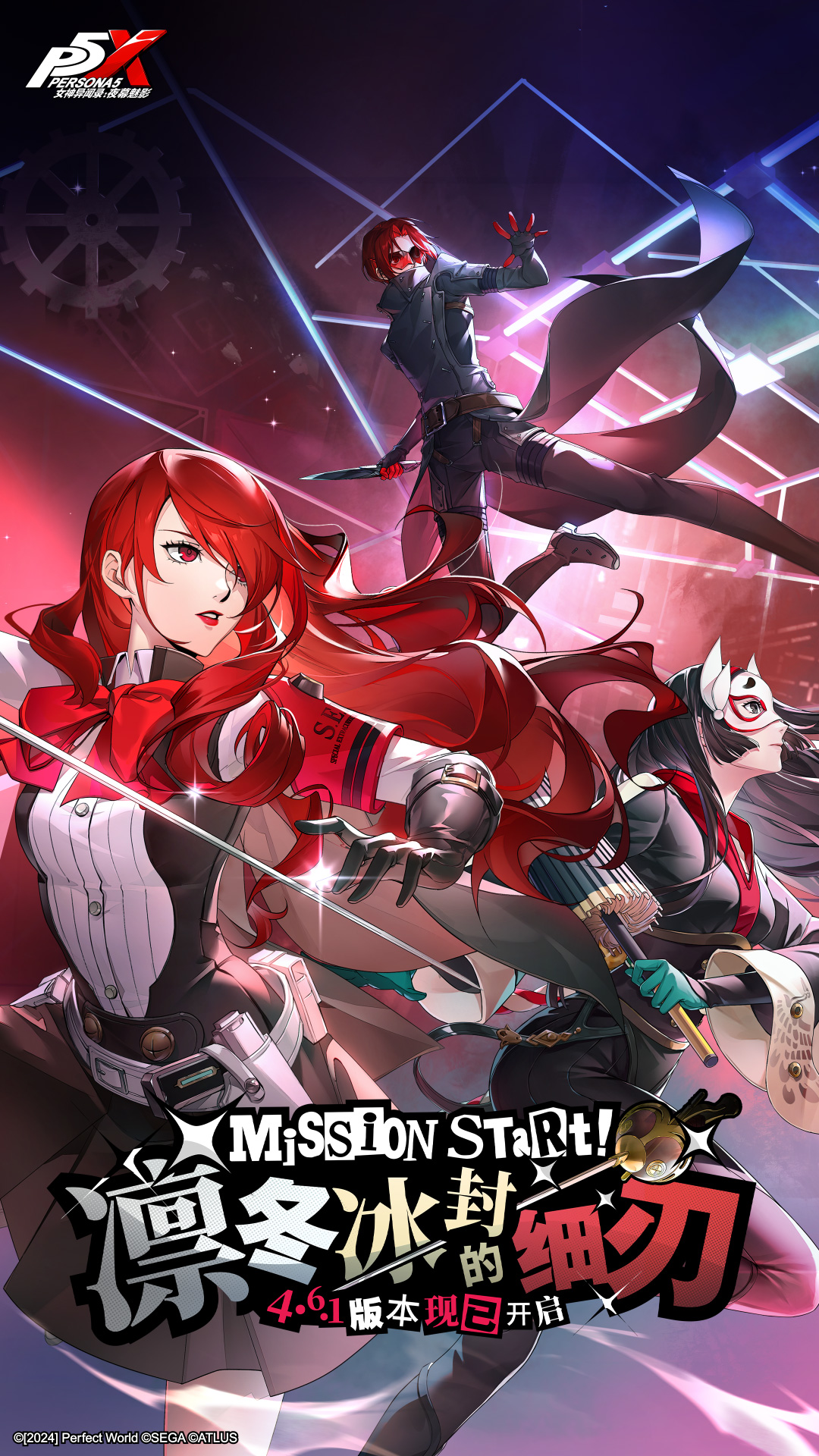 P3R联动版本「凛冬冰封的细刃」10月16日开启!月光馆的绝对律令,五星限定联动角色「桐条美鹤」登场!认知模拟试用角色同步更新。同时,桐条美鹤梦境之章更新以及全新形象即将与大家见面! 《女神异闻录:夜幕魅影》(简称:P5X)是获得了SEGA正版IP授权,由ATLUS全面监修深度参与,完美世界游戏打造的异世界都市冒险JRPG。白天感受潮酷都市生活与青春恋爱日常,放学后化身华丽怪盗潜入宫殿夺宝,体验双面人生!