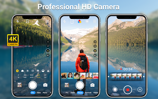 适用于所有安卓设备的免费专业相机应用程序。<br>高清摄像机支持 RAW 照片、4K 视频博客和电影视频。 它是一款专业的电影录像机,简单容易上手,支持单反参数控制和专业模式拍摄,如 HDR、延时、慢快门和夜间模式。<br>还有 100 多个精心调配的电影和日常使用滤镜<br> <br>HD camera pro是一款精简版的全功能录像机,支持camera+和camera2,值得下载!<br> <br>主要特点如下:<br> <br>高清专业相机应用程序:<br>- 前置变焦5倍放大,自拍明亮且清晰<br>- 任何角度的高清摄像头,让您的自拍更完美<br>- 细腻调节感光度和曝光,带来最真实的取景<br>- 高清 4K 视频摄像头,超好用的vlog拍摄神器<br>- 智能AI拍出清晰夜景和高清月亮<br> <br>专业视频拍摄相机:<br>-精心设计的老牌相机滤镜、电影滤镜<br>-支持所有格式调整:帧率、比特率、分辨率、比例<br>-4K 和 4K Max 电影摄像机<br>-自由调节帧率,可进行延时摄影和慢镜头拍摄<br>-支持录制时候暂停并连续录制<br>-支持录制视频的同时随时截取高清照片<br>-多合一高清视频相机和专业电影录像机<br> <br>专业拍摄模式:<br>-视频:具有丰富的设置和强大的功能<br>-照片:高清前后摄影<br>-连拍:快速高清连拍,释放双手<br>-慢速快门:支持光迹和运动模糊,手机端实现单反慢速快门特效<br>-延时摄影:4K高清延时风光大片拍摄<br> <br>数码单反手动相机:<br>- 曝光:调整快门速度和ISO,且支持自动曝光和手动曝光<br>- 多种模式:曝光和白平衡等所有参数均支持自动和手动模式<br>- 慢快门:设置低速快门,调整感光度,可以在低光和夜景下获得高分辨率照片<br>- 智能对焦:包括微距对焦和无限远模式,点击即对焦,对焦快速<br>-降噪:适用于低光和夜景摄影<br>- 所有专业参数调整也支持视频模式<br> <br>专业摄影:<br>- 慢快门模式:拍摄光轨,光绘,以及动态模糊效果<br>- 延时摄影模式:4K高清延时摄影拍摄<br>- 使用夜间模式相机拍摄低光照片<br>- 高速快门,拍摄孩子和动物的动态照片<br>- 使用微距模式拍摄高清动植物照片<br> <br>其它功能:<br>- 包括黄金比例参考线在内的六种网格参考线<br>- 手电筒和闪光灯<br>- 水平仪<br>- 照片定时器:带定时器和自拍相机的快速相机<br>- 变焦相机,前后置变焦<br>- 智能全景拍摄<br>- GPS位置定位<br>- 宽屏图片<br>- 图片和视频质量设置<br>- 支持安卓Camera +、Camera 2、Camera x功能<br><br>补充:<br>这是个一个完全免费,简单易用,且具有大量专业相机功能的App,可以满足对原生相机不满意的 Android 手机用户。我们将持续迭代应用,逐步靠近并超越专业相机。<br>部分手机因机型、硬件差异、版本差异等原因,可能不支持部分功能的使用。<br><br> <br>——————————————<br><br>免责声明:<br>此应用程序基于 Open Camera 代码,并根据 GNU 通用公共许可证获得许可。<br>代码:https://sourceforge.net/p/opencamera/code<br>GNU 通用公共许可证:http://www.gnu.org/licenses