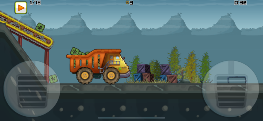 快递小卡车是一个二维物理卡车游戏,你即将成为这辆卡车的驾驶员!不要担心驾照的问题,这里不会让你出示驾驶证件!你的卡车先要在传输带旁边装上满车的货,然后你驾驶着去目的地,道路颠簸不平,不小心货物花落,卡车也可能会翻到,甚至刹车失灵会掉入大海中!快来卡车送货吧!