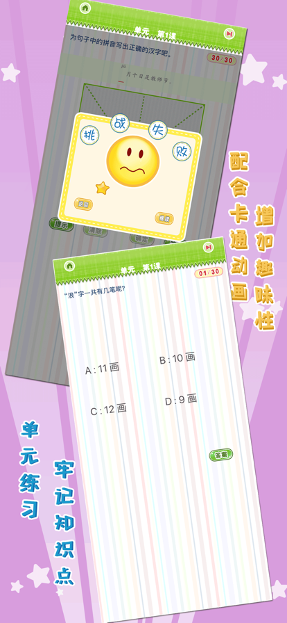 ***超凡背单词 艾宾浩斯记忆原理*** 智能化单元管理是超凡背单词的最大特点,通过对单元任务的有条理的执行,您可以在不知不觉中获得最佳的记忆效果。您无需知道自己今天背了多少单词,也不必为了完成任务赶工,只要养成习惯按部就班,确保每一次任务都能完美完成,胜利很快就会到来! *定期复习:要用最小的代价达到最佳效果,定期回头复习是必须的。艾宾浩斯记忆曲线根据人的记忆周期确定了8个复习点,用于强化记忆效果。本软件的核心便是根据此原则,自动生成复习任务,您无需自己设置复习计划,只要每天打开APP根据提示进行操作即可。务必牢记:有效的复习比填鸭式的背新单词更重要! *强化记忆:每一个单词都会根据您的认知程度进行不同次数不同间隔的重复出现,直到您确认记住为止。此过程科学的帮助您完成短周期的复习任务,强化记忆效果。 *测试检验:每个单元的单词学习完毕后,系统会自动生成测试题目,您必须在测试中达到至少90%的准确率才能通过测试,否则下一个单元不会开放。此过程确保您学习的有效性,保证每一个记忆点都能最大化巩固。 *贴心功能:对于自己感觉难懂难记的单词,可收藏后随时查看;每次单元测试中答错的题目,系统会自动收录到错题集里;如果有您非常熟悉无需学习的单词,记忆页面里也可以通过手指滑动单词列表的方式随时屏蔽或在白名单页面随时解除屏蔽。 *历史单元查看:已完成的单元可通过左侧菜单随时查看,在时间充裕的情况下,建议通过此功能反复巩固复习,这样记忆效果要比一味进行新单元,学习新的单词更有效。
