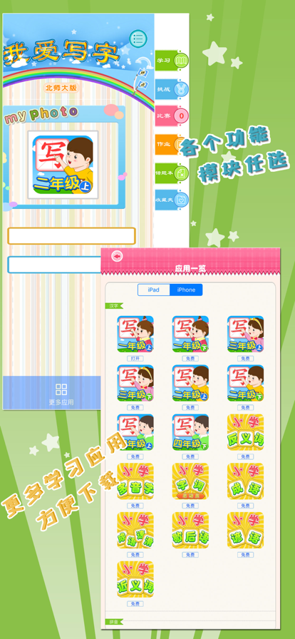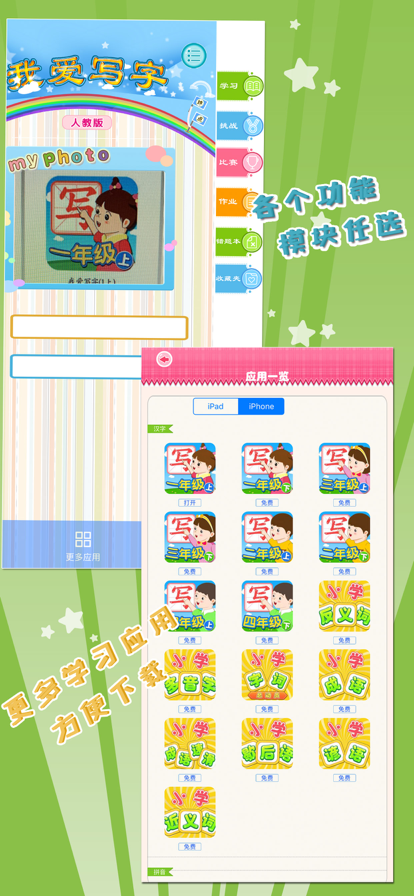 这是一个为孩子学习英语字母而专门设计的一个应用。英语字母是学习英语的第一步,任何人学习英语都必须先学好字母。设计这个应用的目的就是为了让孩子可以一步一步的把英语字母的听,读,写都学好,从而打好良好的基础,让将来能更容易的掌握学习英语的技巧。