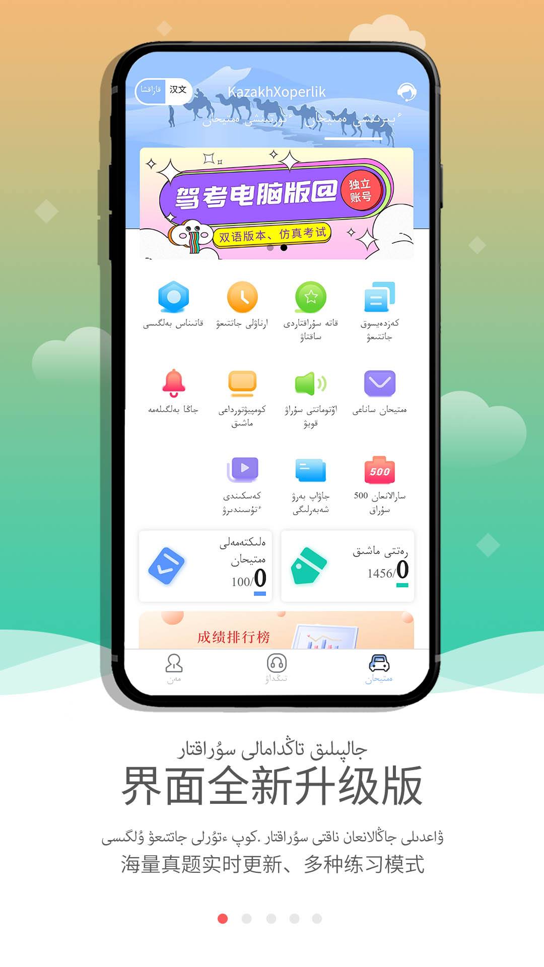 KazakhXoperlik是准驾考题库哈语版,哈萨克族学员考驾照提供科一科四驾考理论刷题助手。有顺序练习、随机练习、专项练习等多种驾考学习模式,内容涵盖小车C1/C2/C3、客车A1/A3/B1、货车A2/B2、摩托车D/E/F驾驶证。是百所驾校的合作伙伴,通过率高,考点押的准! 【产品特色】 1.全真题库:题目紧跟车管所实时更新,新规及时做,考试放心过 2.精简500题:精选高频考点,告别题海战术,省时更高效 3.模拟考试:根据考试大纲随机出题,模拟真实考场环境 4.语音功能:可设置语音开关,自动播题,支持后台播放,对不识字的人群很友好 5.辅助功能:考试统计、错题收藏,帮助学员了解自己跟真实考试的差距,及时巩固学习 【关于产品】 驾考官方网站:https://boddance.com/ 驾考官方公众号:准橙考理论 题库问题及意见反馈:18682465460
