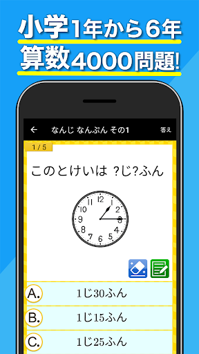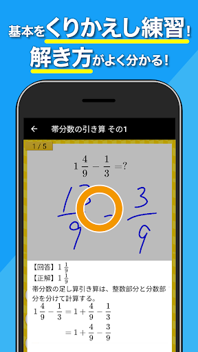 小学一年级到六年级教授的数学计算题有4,213道!<br>按年级/领域的菜单结构。可以小步反复练习,这样就能牢牢掌握基础知识。<br>简单易学,用手指即可在屏幕上书写中间计算,并附有说明,让您清楚地了解答案策略和中间计算公式。<br><br>每次都会问五个问题。<br>如果您获得满分,您将获得“干得好”或“Kenkaiden”标记。<br>它的设计非常简单易用,您可以享受长时间连续使用的乐趣。<br><br>该应用程序在应用程序内显示广告。<br>如果您担心显示广告,对于给您带来的不便,我们深表歉意,但如果您愿意,请使用“学习强化计划(无广告)”。<br>使用条款 https://apps.studyswitch.co.jp/terms_of_use.html<br><br>如果您发现问题,请在启动应用程序后点击屏幕左上角的齿轮图标并单击“联系我们”与我们联系。<br>包含该应用程序的“Hanpuku”学习系列是一个热门系列,下载量超过 5000 万次。<br>“Hanpuku”是 Gakko Net Inc. 的注册商标。