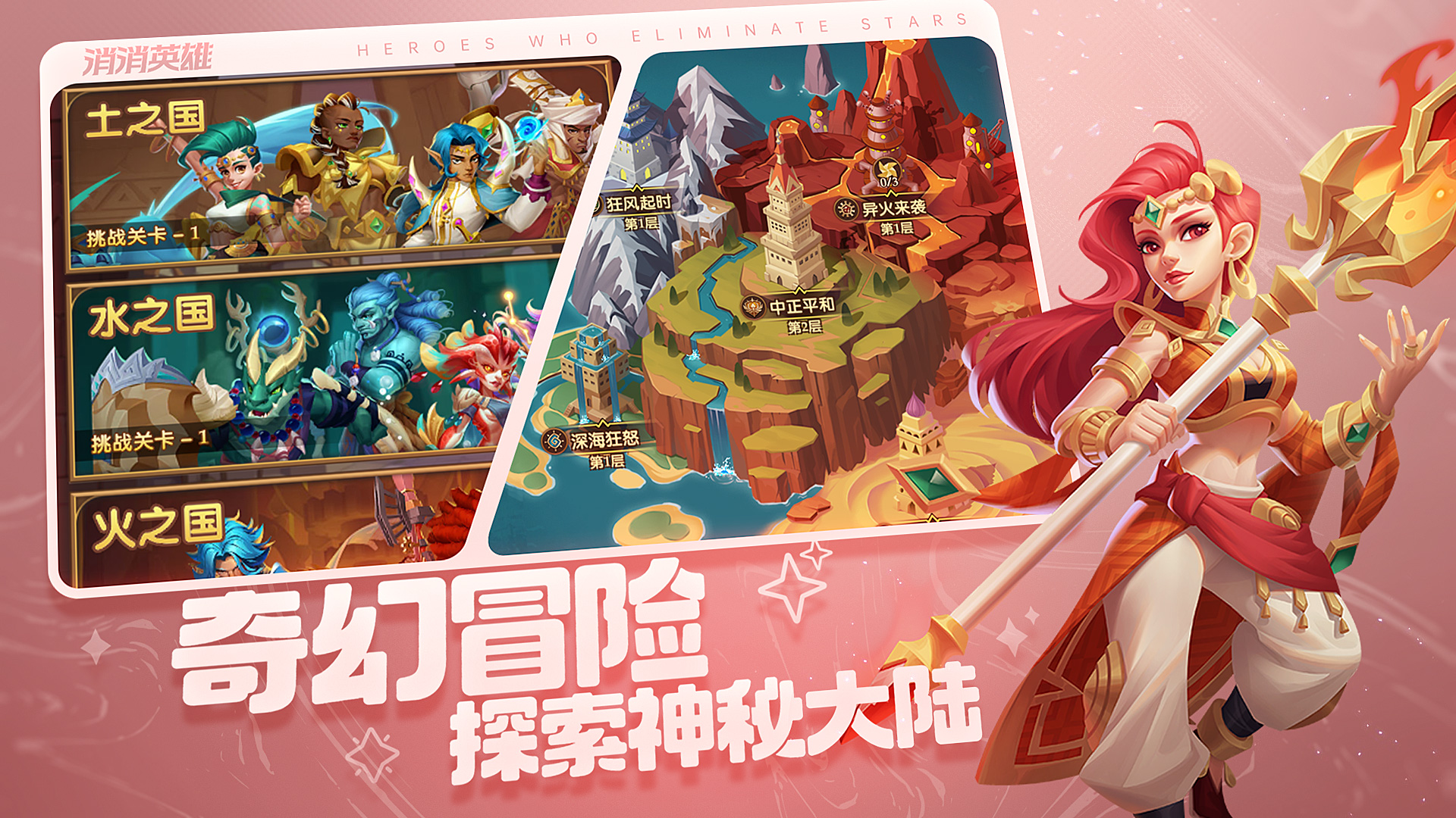 《消消英雄》是一款结合了三消与战斗的RPG卡牌游戏。故事发生在遥远的辛格瑞塔大陆,在神秘蜥蜴人导师的指引下,你将使用汇聚了天地之力的上古神器,亲自操纵地水火风四种元素的力量,带领着身怀绝技的各路英雄们,踏上险象环生、跌宕起伏的冒险历程。 ——激燃战斗,易上手、有深度的游戏体验 休闲三消与传统回合制的巧妙融合,既有消除闯关的淋漓爽感,也有经典战斗的策略挑战!面对强大的对手,你可以尽情发挥,施展高超的消除技巧击溃敌人;也可以深思熟虑,通过排兵布阵、巧用技能来取得胜利。 ——强力卡牌,四大元素、五大国家任君挑选 精心设计的英雄卡牌,每张都有用武之地!包含战士/坦克/辅助三大职业,地/水/火/风四大元素,辛格瑞塔五大国家,新/旧秩序多个阵营……常试常新的卡牌组合,绝不重复的战斗体验。无一废卡,R卡阵容也能释放强大能量。 ——策略玩法,百余种怪物设计、数十款魔力棋子 数以百计的敌人设计 + 花样翻新的消除玩法,丰富你的闯关策略!踏上主线旅程,挑战由污染者、亡灵、银星军团、元素生物组成的邪恶大军,应对各具特色的怪物技能;玩转魔力棋子,花藤、茶杯、铃铛、矿石主题……各类玩法层出不穷。 ——佛系养成,挂机收菜助力轻松推关 护肝保肾,每日领取海量资源!与主角团一同开启冒险之旅,收集各类宝藏,培养你的主力英雄。关卡进度越快,奖励越丰厚~ ——应有尽有,各类活动副本等你探索 主线之外也有特殊挑战,几大副本任君挑选!有海盗船内 轻松爽快无压力的寻宝之旅;也有层层加码 赢取SSR装备的魔王试炼……未来还将上线更具新意的游戏内容,更多有趣的限时活动,敬请期待~