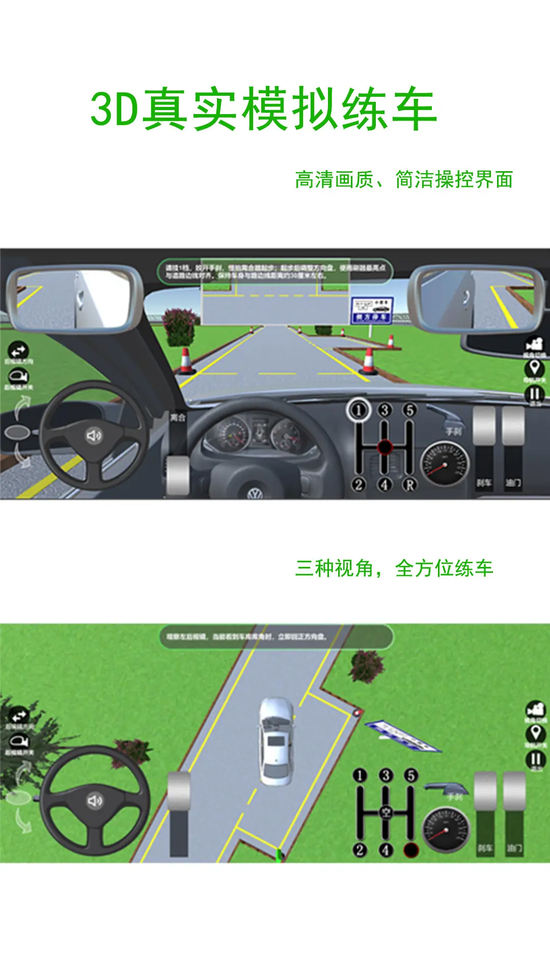 全国驾考3D考场模拟练车简称“3D考场模拟”是一款简单、便捷、能快速上手的手机模拟练车软件,旨在辅助学员快速且高效的通过加考考试,学员可通过app选择自己的真实考场来提前适应考场的练习,真实的车内视野以及视角切换让学员快速的掌握点位的操做,同时结合教练的练车技巧,大大增强了学车记忆,有效地帮助于驾考学员轻松考取驾照。<br><br><br>3D考场模拟APP,一个真正能帮到学员快速拿证的APP<br>足不出户也能在家练车<br>学车找点位就用3D考场模拟