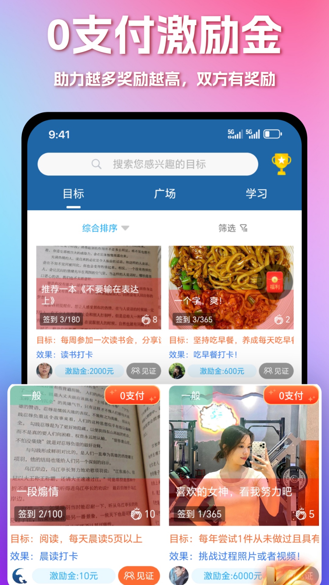 助变已经3岁了,以解决独居老人安心和孩子学习放心的软件;主要以异地陪伴独居老人日常、异地了解孩子学习及自律减肥健身监督等为核心而开发,可以每天了解家人的生活、学习情况,让远在他乡的你安心拼博。 【解决问题】:学习、健身、减肥、日常等没人监督陪伴,如老人有没有每天吃药或吃饭、孩子有没有每天完成读书或作业、恋人有没有健身或学习等,通过定目标、打卡,若家人晚8点还未打卡,则会自动发邮件给多位监督人。 为了让打卡有动力和有趣,目标可以设置一定的激励金给予鼓励,每次完成打卡均有奖励。 【海量福利】:1. 新人3大福利:5万金币,6.66元,3张见证加倍卡; 2.每日现金红包:每天抢现金红包,上限100元,不用做任务。 3.“0支付”目标:好友助力,砍多少就奖励多少,平台最高双倍奖励,奖励透明看得见,双方都有现金奖励。 4. 6项现金奖励:瓜分激励金,PK奖励,全民奖励,佣金奖励等,奖励多种多样,助你轻松赚钱。 5. 8项金币奖励:每日签到、点赞、评论、分享等均可奖励金币,每日最高可以3000金币。 6.没有任务,更没有广告!提现透明,安全可靠。 【适合人群】:1、独居老人。如:老人可以每天分享吃饭、吃药等日常打卡,不仅让远方的孩子了解父母的生活情况,还能安心拼搏。 2、读书孩子。如:孩子可以每天将作业、读书完成情况进行打卡,家长不仅可以陪伴孩子学习,还能了解孩子的生活,最主要还可以奖励每次打卡,让孩子学习更有动力。 3、青年群体。如:监督恋人有没有想TA;陪伴闺蜜、好友一起学习、减肥;若被监督人没有完成打卡,监督人将获得高额激励金奖励; 4、中年群体。如:可以每天陪伴老人生活日常,也可以监督孩子学习打卡,每次打卡还能给予鼓励。 【使用理由】:助变是一个关注、关心独居老人和孩子成长的软件,咱能懂因生活所逼,你不得以在他乡拼博,但责任和陪伴不能缺失,我们拒留遗憾,一起关心老人健康和陪伴孩子成长吧! 【使用场景】:海量目标库供你参考,目标五要素,高额奖励机制,助你完美蜕变。 1、父母远方拼博,无法照顾在老家上学的孩子,可以定目标监督他;同时还可以定期末考试目标,不仅能提升学习成绩,还能以这样有趣的形式陪伴孩子成长; 2、老人或孩子独自在家生活,但无法了解老人或孩子的生活动态,可以通过监督打卡来了解。 3、跟老公、男友异地,但没办法监督戒烟、戒酒,可以定目标监督他,鼓励他高效完成; 4、男友、老公总食言,答应一起逛街、看电影,通过定目标完成,有趣又有意义; 5、爸爸喝酒控制不了,可以定目标鼓励他; 6、闺蜜、好友背单词拖延,可以邀请好姐妹监督,失败了好姐妹瓜分激励金; 7、瑜伽,健身没动力,可以定目标云监督,大家陪你一起完成。 ………还有很多使用场景,通过鼓励、监督,见证,让目标高效完成。 【意见反馈】:QQ:1557178331