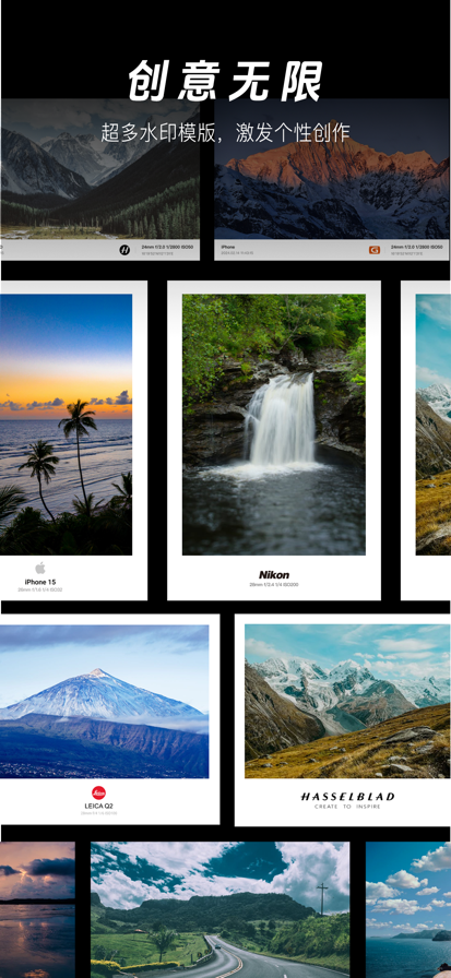 一款摄影师必备的宝藏边框水印相机APP,图片水印添加神器。照片信息自动读取,一站式快速制作,原图导出,还原照片质感。 应用描述: 一款操作简单,功能丰富的照片水印边框添加神器,让你的照片一秒变高级。 【水印相机】 专业相机拍摄,自动添加边框水印 【大牌水印 一键获取】 提供超多的品牌标识水印、大牌水印应有尽有 【超多模版 个性创造】 更多的水印模版,自动读取照片信息,实现一键添加边框水印 【原图导出,还原质感】 支持将制作好的图片原图无损导出,真正的还原图片质感。 ---------------【自动续费会员的说明】------------------------------ 1、付款:“连续包周/月/年” 商品为自动续费商品,确认购买后,会从您的苹果Itunes账户扣费 2、续费:会员服务将在当前付费套餐前到期24小时自动续订,从您的iTunes账户中扣费,扣费成功后顺延一个订阅周期。 3、如需取消续订,可以再当前付费套餐到期前24小时手动取消,您可以在手机系统设置的Itunce & App Store账户管理中管理或者取消订阅。 4、服务协议 https://watermark-frame.aipro.fans/app/agreement/ios/1 5、隐私政策 https://watermark-frame.aipro.fans/app/agreement/ios/2 6、增值服务协议 https://watermark-frame.aipro.fans/app/agreement/ios/3 7、自动续费协议 https://watermark-frame.aipro.fans/app/agreement/ios/4