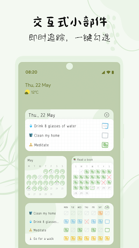 使用我们强大的习惯跟踪应用程序改变您的生活!<br><br>您准备好掌控自己的生活并成为最好的自己了吗?别再犹豫了!我们的应用程序是您养成和保持健康习惯、提高生产力和实现自我完善目标的终极伴侣。<br><br>以下是我们的应用程序的与众不同之处:<br><br>轻松的习惯追踪:<br>在主屏幕上轻松监控您的日常习惯,确保您专注于今天最重要的事情。只需简单的滑动,您就可以将每个习惯标记为完成,使跟踪变得轻而易举。<br><br>每周综合概述:<br>鸟瞰您的所有习惯及其每周进展。我们的应用程序可帮助您可视化您的成就和需要改进的领域,让您走上长期成功的轨道。<br><br>追踪您的习惯历史:<br>通过查看您的历史数据,获得对您的习惯历程的宝贵见解。随着时间的推移,观察您取得的进步并转变为更好的自己。<br><br>无限的习惯养成:<br>与许多习惯跟踪器不同,我们的应用程序允许您创建无限数量的习惯。无论您想专注于健身、正念还是个人成长,我们都能满足您的需求。<br><br>令人惊叹的新小部件:<br>令人兴奋的消息!我们推出了四个漂亮的小部件,让您更加愉快和方便地坚持您的习惯。这些小部件将您的习惯放在首位,确保您永远不会忘记自己的目标。<br><br>我们的应用程序针对那些寻求习惯跟踪器、例程和自助工具的人进行了优化。从今天开始,您将迈向更健康、更高效、更完善的自我。立即下载,看看您的习惯如何改变您的生活!