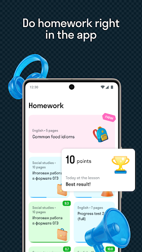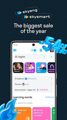 使用Skyeng应用程序,您可以随时随地自己或与老师一起学习英语,与以英语为母语的人练习讲英语,学习英语单词,练习听力,并了解文化。<br><br>自己研究<br>在您的个人词汇表中添加新词,然后进行练习。对于那些从一开始就学习英语的人,我们选择了从旅行到工作面试等热门话题。您还将从自己喜欢的电视节目,英式和美式语中找到表达方式,以及在国际考试中遇到的术语。制定自己的学习计划-每天2分钟和3个练习,并定期练习。<br><br>与老师进行一对一会议研究<br>在Skyeng在线学校,您可以与老师一对一学习。您所要做的就是将应用程序安装在智能手机或平板电脑上-所有任务已经存在。在入门课程中,您将参加语言水平测试,确定您的目标和兴趣,老师将为您创建一个课程计划-旅行,工作或考试。在该应用中,您还可以做作业,与老师聊天,安排课程或重新安排课程。您需要的只是一个良好的连接和空闲时间。<br><br>与原生说话者交谈<br>该应用程序还包括Skyeng Talks-15分钟的以母语为母语的课程。它们适合所有级别:初学者克服语言障碍,并继续提高英语口语水平。在1-2分钟内,该应用程序将为您找到从澳大利亚到南非的世界任何地方的老师,并且您将通过视频通话就您想要的任何话题进行聊天。<br><br>了解更多关于英语的信息<br>梳理语法规则,练习发音或从美国和英国学习最新消息-所有这些都可以在该应用程序的故事和文章中找到。关于文化,生活方式,幽默以及英语词汇,还有很多有用的信息。<br><br>练习听<br>我们当然也没有忘记聆听。在应用程序中,您可以观看英语短片,以更好地了解流利的母语人士。该应用程序包括电影,艺术,科学,时尚,单词集和其他主题。