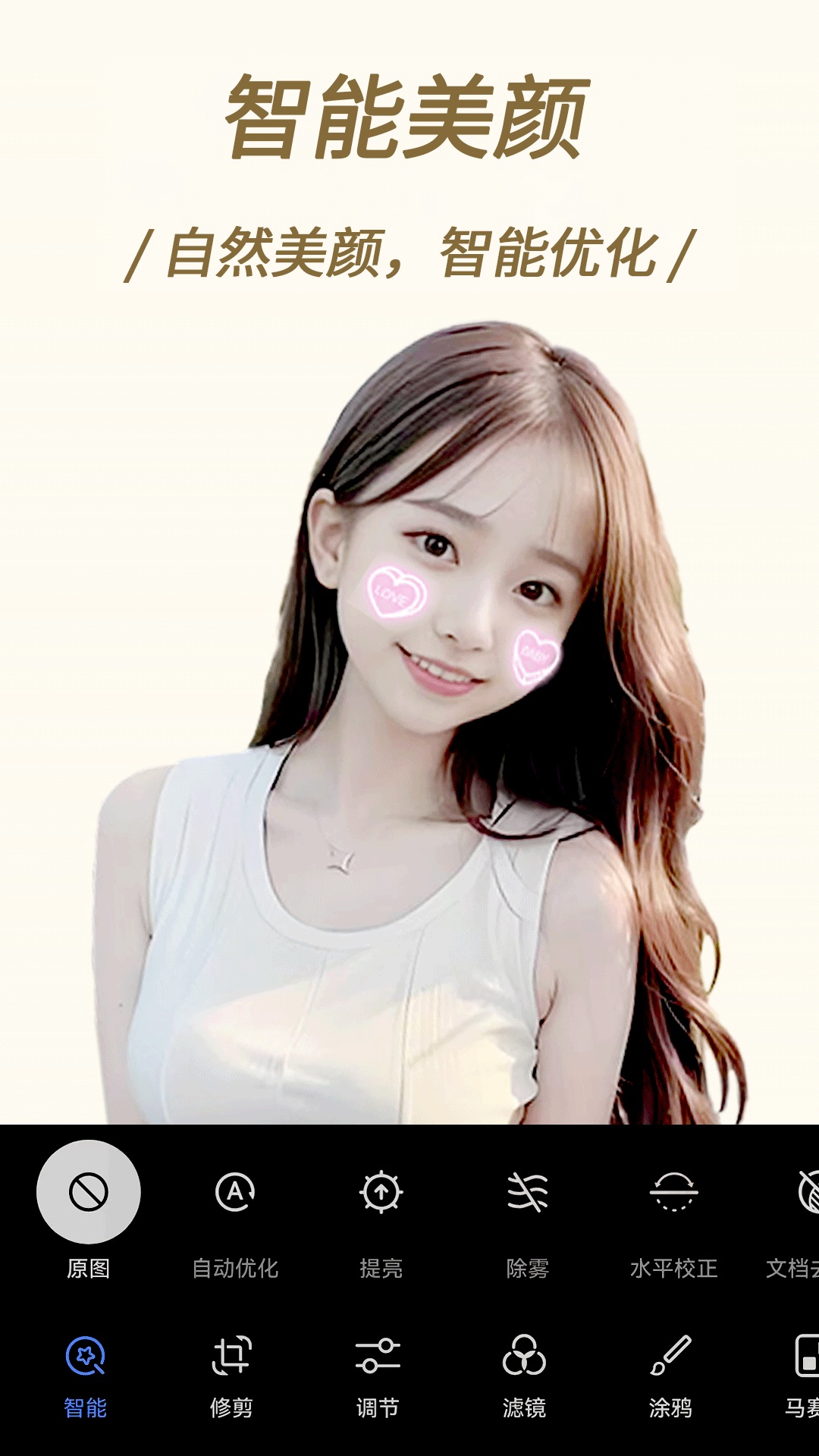 一款素颜就可以拍出干净自然清透妆容的神仙app,与你一起打造完美清纯素颜感,主打一键Get同款美妆,轻松拍出时尚美妆。<br><br>时尚与流行美妆结合,素颜打造完美自然清新风格,质感滤镜记录可甜可盐的瞬间<br><br>【同款美妆】<br>一键Get同款流行时尚美妆<br>杂志风、ins风、日韩风、可盐、可甜多种美妆任你选择!更有百变姿势,一键Get拍照姿势+美妆!<br><br>【清新风格】<br>干净自然清新风格<br><br>【质感滤镜】<br>高级质感不吃妆的可甜可盐滤镜<br><br>【智能高清美颜】<br>智能脸型分析,为你制定专属脸型 <br><br>【高清模式】<br>轻松拍出原相机质感的高清自拍神器,记录可甜可盐的每个瞬间