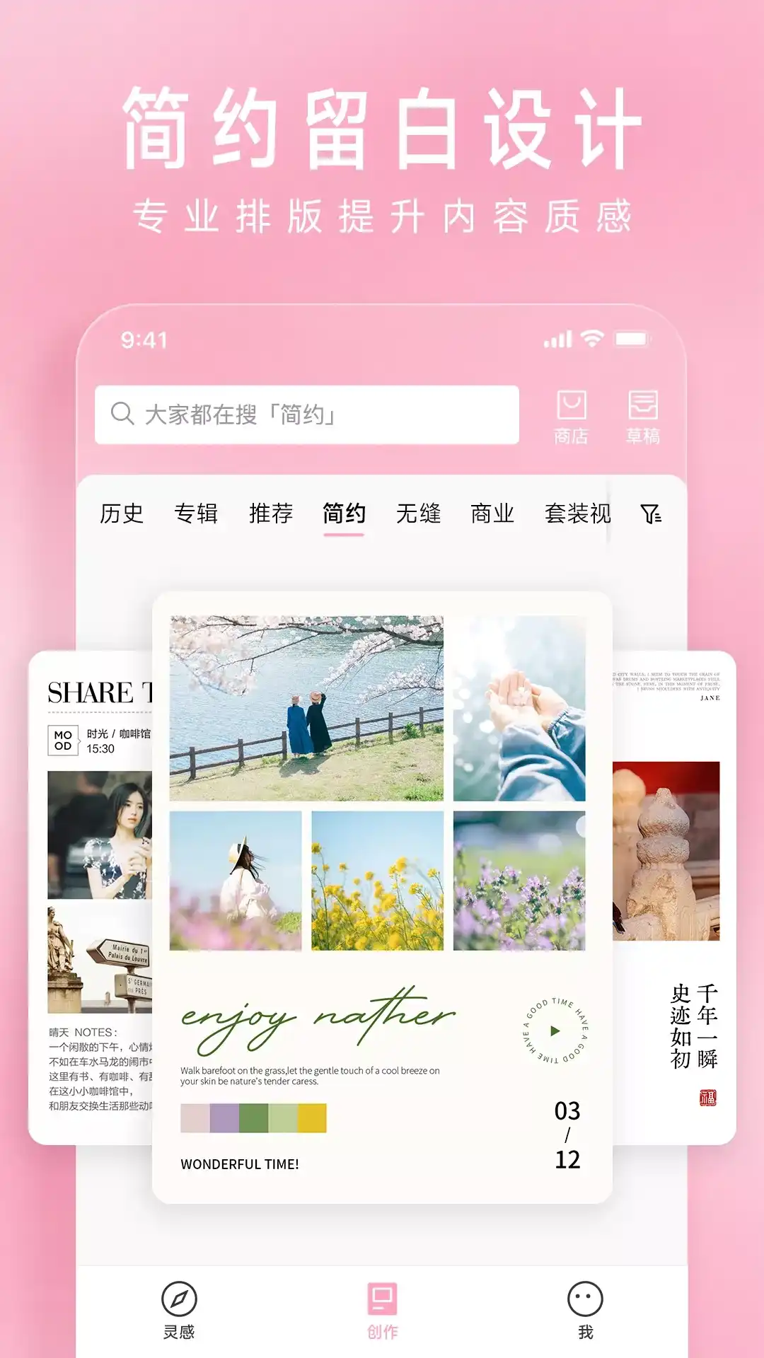 在简拼,美学是生产力,更是生活方式。 在简拼,工作日是美学设计师,周末是生活艺术家。 简拼功能全景指南: ●核心创作工具 1.经典拼图拼视频 a.多场景模板:日常碎片/日签/情感/工作日记,秒出高级大片。 b.布局拼接:二拼/三拼/四六九宫格,支持照片+视频混合排版。 c.长图拼接:竖向/横向超长图,适配聊天/电商/照片展示。 2.时尚视频套装模板:一键生成博主级Vlog,风格化视频日记。 ●特色设计模版库 1.简约留白设计:行业领跑的专业排版,一键提升内容质感。 2.东方时间美学:高审美准时更新,24节气/传统节日专属视觉模板。 3.胶片与拍立得:当下的文艺潮流,复古滤镜+文艺边框,支持多画面拼贴,长图主题。 4.营销主题拼图:美学朋友圈,品牌级视觉模板,高级自媒体主图和营销长图。 ●智能创新功能 1.智能时光书摘:知识视频/卡片自动生成,一句指令即刻实现文案→设计→成片。 2.智能识色系统:场景色彩识色,一键即刻获取家居/穿搭实时配色灵感方案。 3.智能模板拍:即拍即得设计,自动地点时间水印,快速完成现场创作。 ●社区与成长 1.成长视觉手账:碎片日常的仪式感表达,助力个人IP打造。 2.高级文艺社区:美学灵感共享平台,一键同款模版套用。