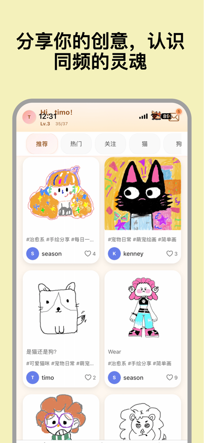 心绘 —— 一个轻松涂鸦、记录心情的空间 心绘不是绘画展示,也不是打卡任务。 这里不需要技巧,也不需要画得好。 你可以随心画一笔,用颜色或线条, 轻轻记录此刻的状态。 画几秒也没关系, 不分享,也完全可以。 你可以在心绘做什么 随手涂鸦,放松一下 用颜色记录当下心情 私密保存,或匿名分享 每一次涂鸦,都是一次轻松的记录 心绘不要求你坚持, 只在你想画的时候,陪你一下。 要是你有想提的小建议,创作心得,随时都能找我们聊聊:1695052462@qq.com,我们一直都在。