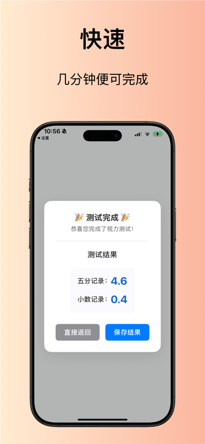 视力表是一款专业而便捷的测试视力的应用软件。无论您身处何地,只需打开应用,即可进行准确而迅速的视力测试。通过一系列精心设计的视力测试项目,可以帮助您评估自己的视力水平,包括近视、远视和散光等。它具备简洁直观的界面,易于使用,使您能够随时了解自己的视力状况。无论是日常监测,还是作为规律训练的一部分,极视力都将成为您保持良好视力的得力助手。