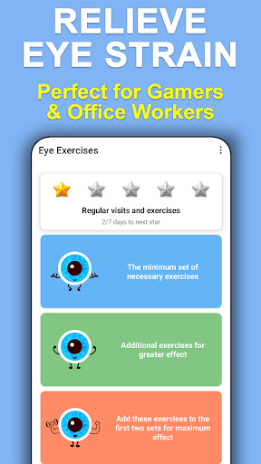 <h2><b>Eye Exercises : Eye Care App</b></h2><br><br>您需要尽快照顾好您的眼睛,因为在我们的世界中视觉更为重要(90% 的信息来自眼睛)。因此,我们研发了这款<b>眼保健操提高视力</b>眼睛应用程序,让您可以随时随地在方便的时候保护和改善您的视力。无论您是想在繁重的工作后放松一下眼睛,还是想重见光明,这款《眼保健操:眼部保健 App》都能帮您实现。会帮助你。<br><br>在这个<b>护眼应用程序</b>中,当天的锻炼包括眨眼练习、移动物体、缩放物体和手掌练习。<br>目标是对抗干眼症、调节痉挛和懒惰眼。它还可以让你刺激你的眼睛,带来意识,放松眼睛和身体。每天晚上考虑进行夜间锻炼,包括轻度锻炼和手掌锻炼。<br>目标是对抗夜间视力不佳、瞳孔收缩、瞳孔意识等。<br><br><h2><b>眼保健操的主要特点:眼保健应用程序</b></h2><br><br>✻ 这些练习可以让您放松并改善视力。<br>✻ 无限提示:从数以千计的提示中过滤您感兴趣的类别。<br>✻ 夜间模式:方便您的夜间阅读体验。<br>✻ 书签:在书签列表中添加您最喜欢的提示。<br>✻ 裁剪:捕捉您理想的图像或技巧,并与您的亲人分享。<br>✻ 最后阅读:从上次中断的地方继续阅读提示。<br>✻ 分享:与您的朋友分享您最喜欢的图片技巧。<br>✻ 您在此应用程序中有不同的图表可以练习一整天。<br><br><b>移动眼部护理应用程序</b>提供<b>眼保健操的方法</b>这实际上可能有助于延迟某些人对眼镜或隐形眼镜的需求。但是您不需要购买特殊的锻炼计划或遵循规定的视觉体操来完成这些事情。如果您的眼睛因过度的近距离工作(例如盯着电脑)而感到疲倦,那么休息一下视觉以关注更远距离的物体是个好主意。鼓励您的视觉系统发挥最大作用很重要。<br><br>众所周知,锻炼肌肉对我们的健康有益。<b>眼保健操怎么样</b>改善视力?虽然现在还没有有效的 <b>眼保健操</b>对于散光、近视或远视,也称为屈光不正,眼保健操有助于优化视觉技能。视觉疗法是一种眼睛物理疗法,已被证明可以改善某些涉及眼睛对准和聚焦的状况。在 <b>视觉治疗</b>期间,患者需要进行一组针对弱视等疾病的眼保健操。虽然在眼科医生的指导下可以就如何使用眼保健操提供更多指导,但也有一些眼部肌肉锻炼可以在家中进行。虽然我不希望这些眼保健操能快速改善视力,但只要勤奋,它们可以逐渐帮助解决注意力问题和眼睛疲劳。