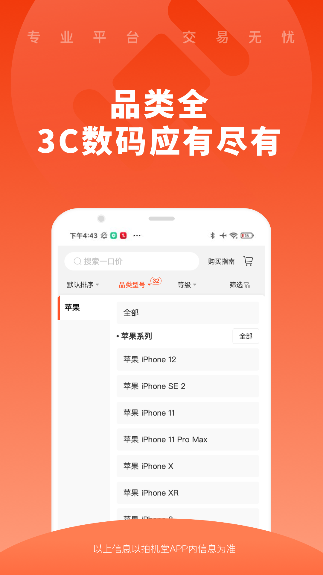 买卖二手,就上拍机堂! →在拍机堂,手机、平板、笔记本等3C数码产品,品类齐全,我们努力让买卖二手这件事变得更省心更放心; →在拍机堂,没有中间环节,从买家直接到卖家,价格优,许多人都获得了更舒心的体验; →在拍机堂,服务更优质,买卖流程由系统判断,问题机器可以退货,专人售后也更放心; →在拍机堂,有专业的质检团队,品质有保证,可安心买卖! ====== 怎么联系我们? 如果你手上有闲置的机器,或者想买二手手机、平板、笔记本等二手3C产品,可以关注公众号:【拍机堂】,获取更多资讯与动态! 有什么意见和建议,都可以跟我们说哦~