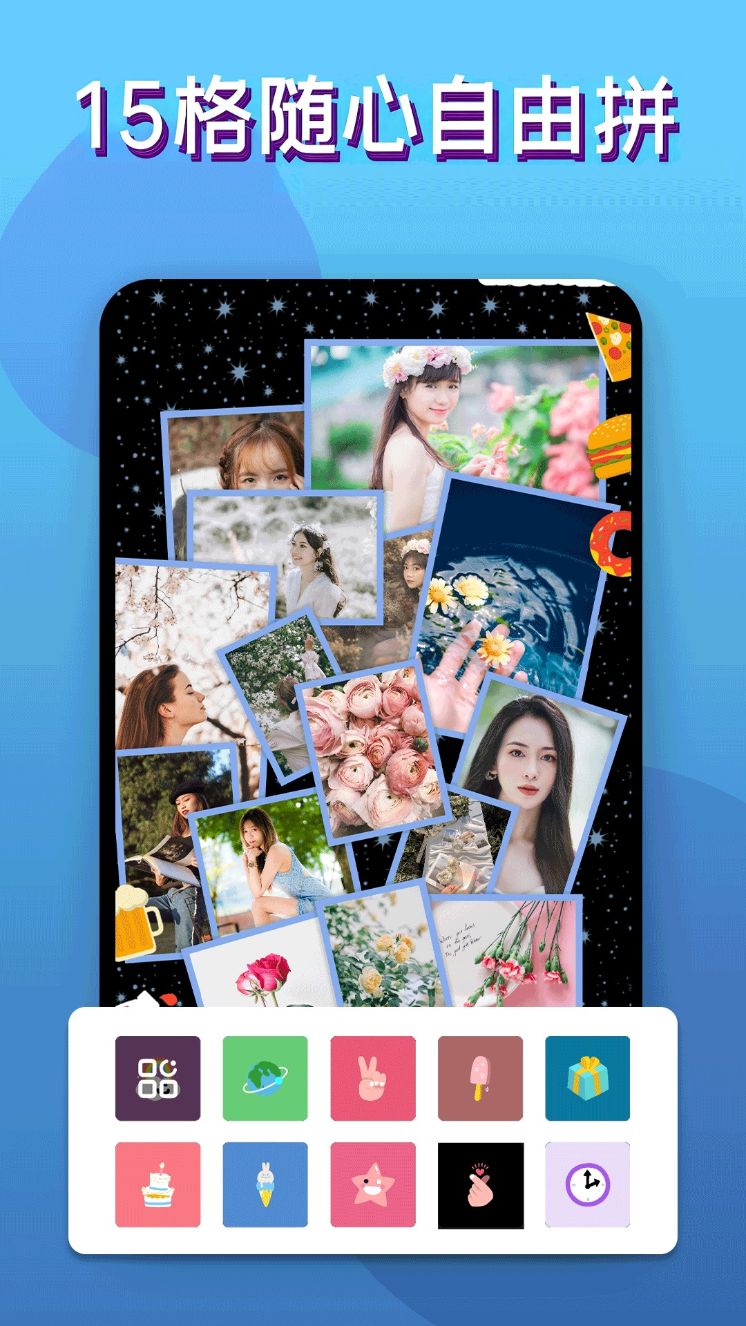 照片编辑拼图,照片拼图拼长图 照片编辑器,是你喜爱的照片编辑软件,还可拼图、自由拼图、长图拼接。丰富的照片编辑功能,滤镜、装扮、贴纸等,简单快速制作出满意的图片效果 照片编辑 - 多种多样照片滤镜 - 无需裁剪即可调整比例,1:1, 3:4, 5:4, 9:16 等 - 模糊、马赛克, 改变照片背景 - 贴纸种类丰富,字体创造照片 - 涂鸦功能,照片画画 照片拼图 - 可将多达20张的照片进行照片组合 - 15张自由拼图,随心所欲照片拼图 - 长图拼接支持16张,拼接长图更方便 - 100+ 布局可供选择,变换照片组合比例:1:1,3:4,5:4,9:16 等 - 调节照片组合的边框, 编辑照片组合使用拖动交换图片、替换、旋转、裁剪,还有更多功能 - 背景、滤镜、贴纸、添加文字等创造惊人效果 丰富模板 - 上百种潮趣拼图模板、好玩有趣的贴图、美图贴纸 - 自定义背景图,技术上对照片采取前后景分层处理 - 近千款可爱贴纸,猫咪兔耳朵、文艺清新、潮酷恶搞各种贴纸 - 分享拼图:保存作品到你的图库,多种途径分享