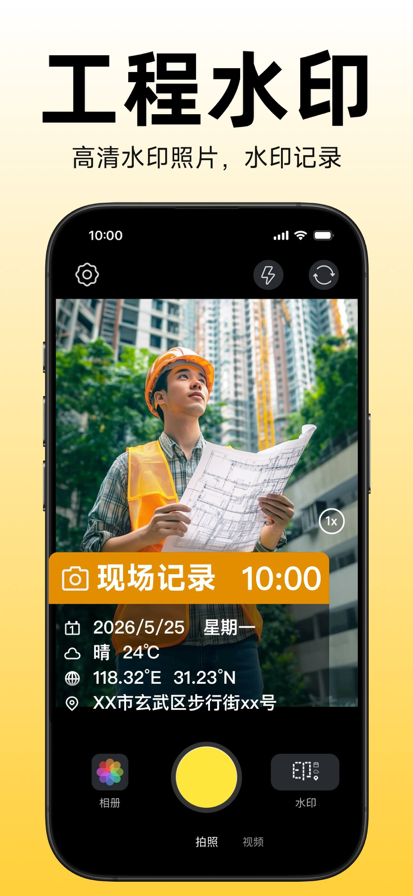 超好用的工作打卡 App,支持实时拍照、相册选择、视频录制,具有海量模板水印~! 轻松拍照,日常工作认证,更多基层工作团队的选择。 【适用场景】 考勤打卡、工作质量记录、物业工作记录、房屋验收、快递外卖、外出培训等 【丰富的显示选项】 多种时间类型格式、天气、地点、经纬度、自定义内容等。 【专业的水印模板】 * 工作记录拍照:物业管理、建筑工程管理、执勤记录等工作记录专属模板 * 实时更新:水印可自动更新为实时的日期、地点、天气等信息 * 自定义水印内容:可自由开关和编辑水印内容选项 【自定义水印】 水印上内容选项自由开关,自由添加水印内容等。 一、付款:用户确认购买并付款后记入iTunes账户; 二、续费:苹果 iTunes 账户会在到期前 24 小时内扣款,扣款成功后订阅周期自动顺延响应周期; 三、取消订阅:如需取消续订,请在当前订阅到期 24 小时以前,手动在 iTunes/Apple ID 设置管理中关闭自动续订功能 四、隐私政策:https://docs.qq.com/doc/p/96e759cd20b4efbaa36e449e86db750d1c4b32b0 五、用户协议:https://docs.qq.com/doc/p/34fe3fe763ce26a7e595f01ce1b1069e1dbb5a5b