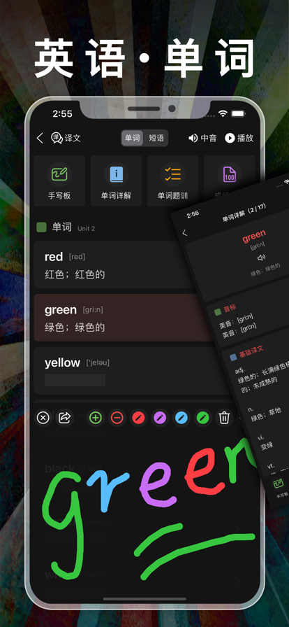 YY背单词CET四级核心词汇专业版在艾宾浩斯(Ebbinghaus)遗忘曲线理论基础上, 结合众多背单词使用者的实战经验, 通过与使用者的简单交互, 利用人脑记忆黄金序列法找到学习者的记忆遗忘点,然后根据学习者的不同情况,逐渐调整适合其自身的黄金序列,在学习时间接近学习者记忆遗忘点时,重复学习者还没有形成长期记忆的内容,决定学习内容出现的频率和次数,直到记忆遗忘点消失,以达到长时记忆的效果。(所有内容均为离线模式,不需要连接互联网,软件支持iPhone、iPod touch、iPad等各版本的软硬件设备) === 软件特色 === 1、单词全: 覆盖了新大学英语教学大纲四级以及四级考试词汇必备的全部词汇 (注: 免费版可背诵1000个单词, 无任何功能性限制)。 2、强悍的闪电记忆功能,利用智能记忆引擎,动态管理记忆黄金序列,数倍提高记忆效率。 3、全文有声词典支持: 每个单词都提供详尽的中文解释、音标、发音、例句用法、联想记忆、词语辨析、英英解释等。 4、生词字典:每一课学习过程中都能迅速切换到该课程的生词列表,每个单词都提供详尽的解释、音标、发音、例句用法等等,每个单词都可自主加入“生词本”中,帮助你快速记忆学习英文单词。 5、全智能任务管理: 智能分配每天需要完成的单词任务, 学习者在完成任务的过程中潜移默化做到长效记忆的效果, 任务同时提供方便的回顾管理功能。 6、提供单词收藏以及测试错题库等功能, 简便易用实用! 以上仅仅是一个开始,本软件会不断更新与扩充内容,终身免费升级! 友情提示: 任何强大好用的工具都离不开使用者自身的努力, 工欲善其事,必先利其器, YY背单词这个利器已经提供给你, 就等你来体验使用与收获了! 您在使用过程中遇见任何疑问或有任何建议,可随时通过软件里的帮助支持链接来与我们取得联系。