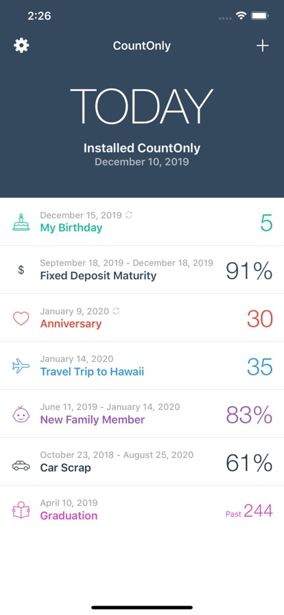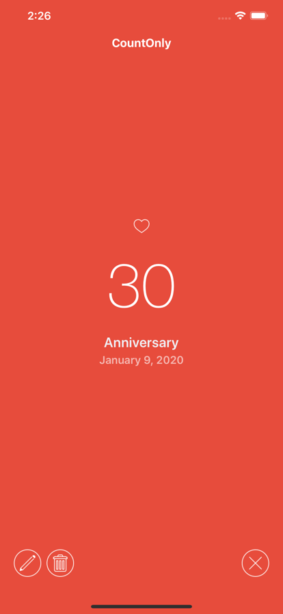 CountOnly是一种简单而华丽的倒计时程序。真正的简单。 这一切要倒计时的生活,如生日,结婚,纪念日,节日出游,甚至你退休的完美伴侣。 当你开始使用CountOnly,你会发现它是多么简单和容易,让您的所有重要和令人兴奋的活动轨迹感到惊讶。并与CountOnly的漂亮的界面,倒计时剩下的日子就变成了喜悦。 产品特点: - 简单而直接的应用 - 进度(%):容易看到你的倒计时进度 - 今天的Widget:在通知中心快速访问你的项目进入倒计时 - 图标和颜色:图标和钦点柔和的色彩吨定制每一个倒计时 - 苹果观察:查看您的Apple关注你的全部倒计时! CountOnly是由充满激情的人建造的。我们很想知道,我们如何能够变得更好,所以请与我们联系。