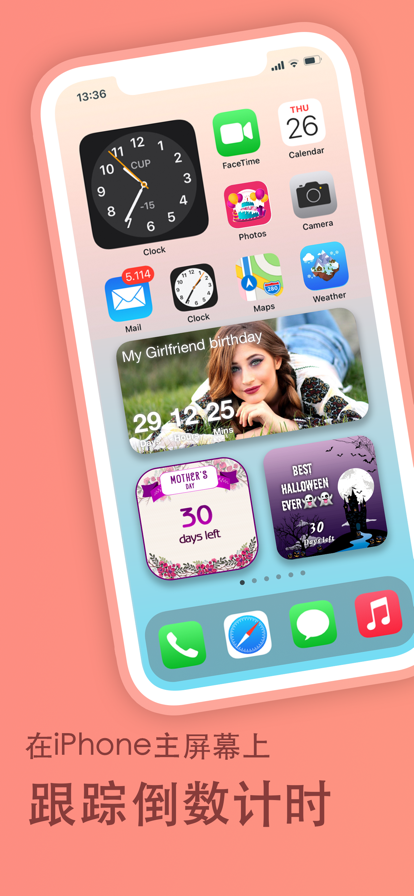 倒计时小组件321将给你本身、家人、朋友与同事带来难以忘记的倒数体验。 详细描述: 你生活里会有一些让你难以忘怀的重要活动,如生日、结婚纪念日等。。。或是你正在盼望到来的活动,如到其他国家旅游的旅程、宴会、圣诞节、万圣节等。。。 所以,请安装我们的应用,以避免失误这些活动。 优点1:可以在手机桌面上进行活动倒数,而不需要解锁或app. 2016年底,iphone已经给插件一个特殊优惠政策。关于此份倒数应用,我们已经以插件模式进行设计,目的是让你能够在手机桌面上查看倒数活动,而不需要解锁或开启应用。 优点2:设计好看、有趣味,使手机桌面特殊显眼 我们使用的设计款式虽然简单,可是其有特点,帮你容易查看倒数活动。这些活动若创建插件到手机桌面时,会使手机更加显眼。 它的特点是,你可以容易替换丰富的颜色、尺寸、背景图片的设计。 优点3:可以跟家人、朋友、同事分享倒数活动,这是与其他倒数活动不同的特点。 你想跟伴侣一起倒数你孩子出生时间?你想跟家人倒数圣诞节或新年?你想跟同事倒数公司产品上市时间?这是有我们创建Sharing功能的理由-帮你与亲人一起体验倒数活动。此功能是其他倒数应用没有的特色功能。 另外: + 插件应用拥有着很多特色背景图片。 + 可以在iPhone, iPad 及 iPod设备上使用。 特别是,此应用已经得到“当日有价值的应用”奖励。请立即下载及体验!!! -------------------------------------------------- ---------------------------------------------------- 几乎所有功能都是免费的,但如果您想要定制功能,可以以合理的价格订阅或购买 Lifetime。 以下内容将适用: * 根据您选择的订阅选项,您将每月或每年支付一次费用。 * 确认购买后,付款将记入您的 iTunes 帐户。 * 除非您在当前订阅期结束前至少 24 小时关闭自动续订,否则您的订阅将自动续订。 * 您的帐户将在当前期间结束前 24 小时内扣款。 价格以美元为单位,在美国以外的地区可能有所不同。 * 您可以在购买后转到帐户设置来管理您的订阅和续订设置,或终止订阅。 使用条款:https://activeuser.co/term/countdown_policy_term.html 隐私政策:https://activeuser.co/term/countdown_policy_term.html