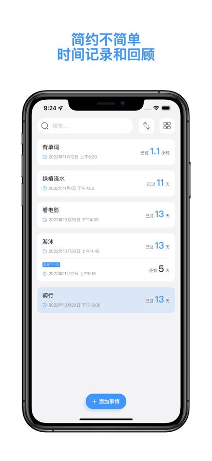 还记得某件事情上一次做是什么时间吗? 从上一次到现在间隔了多少天了,是否应该开始做下一次了? 主要功能列表: - 上一次时间管理 - 自定义事情列表 - 自定义分类 - 自定义标签 - 安全密码 - 下一次时间提醒 - iCloud备份 - 数据导出 - 归档 - 图表统计 - 桌面小组件 - 支持Apple Watch 如果你在使用中遇到问题或有更好的建议需要反馈时,请详细描述问题并发送邮件至:im@zhaoxiangguang.cn